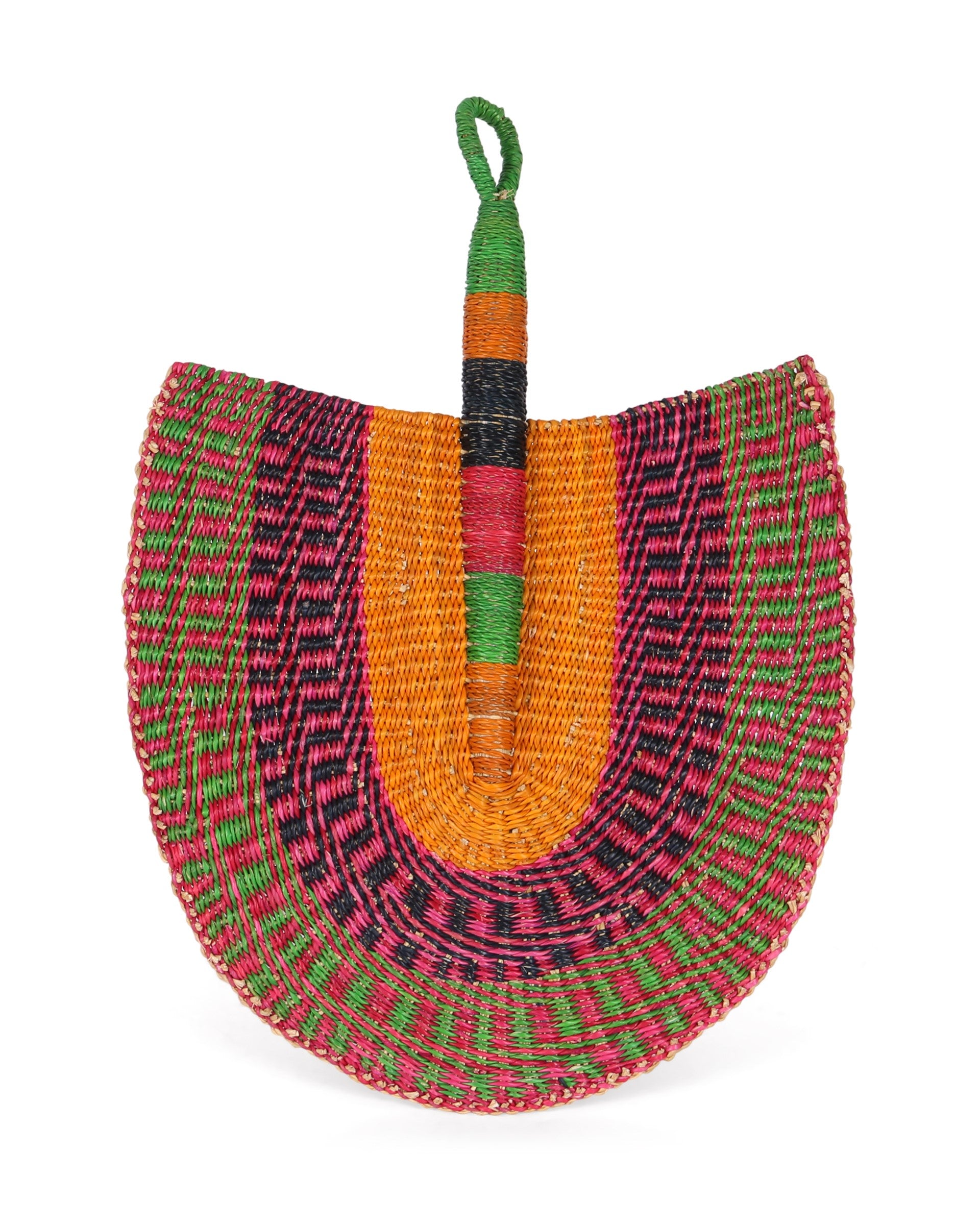 AKIMODA: Orange, Green and Pink Woven Fan