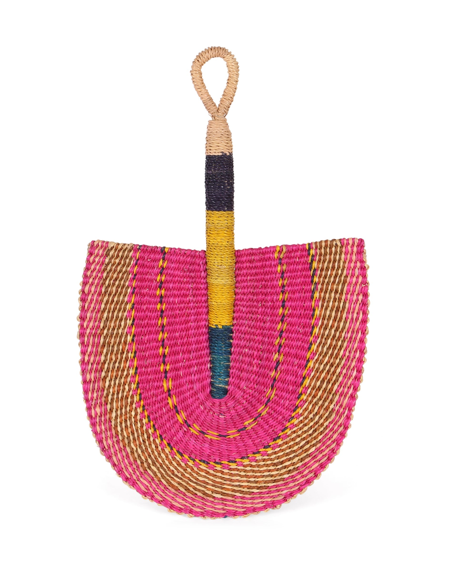 ASHIEM: Pink, Brown and Yellow Woven Fan