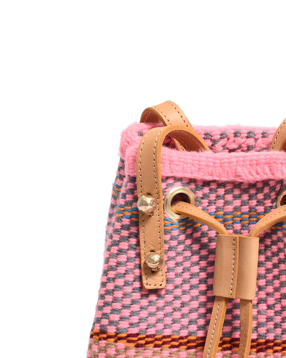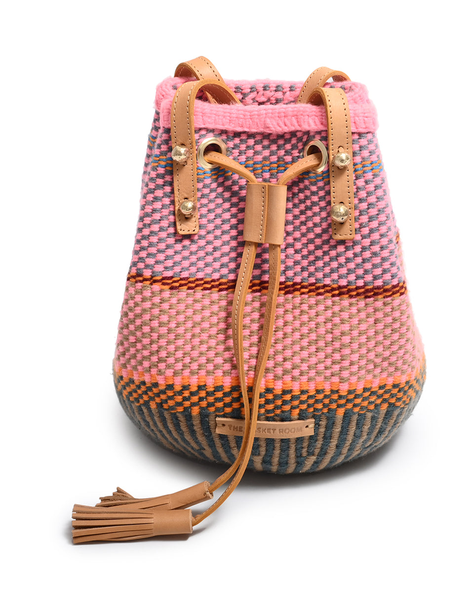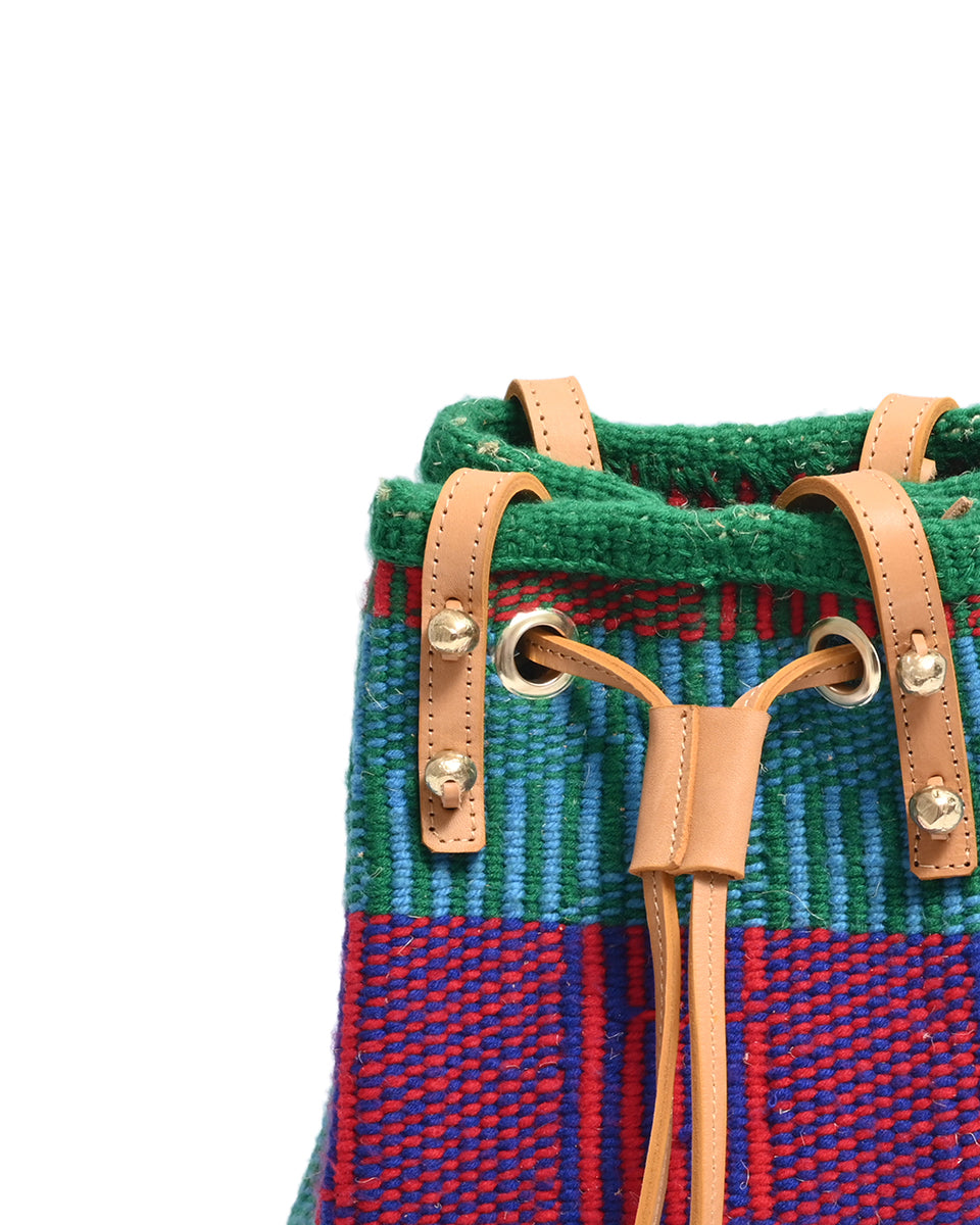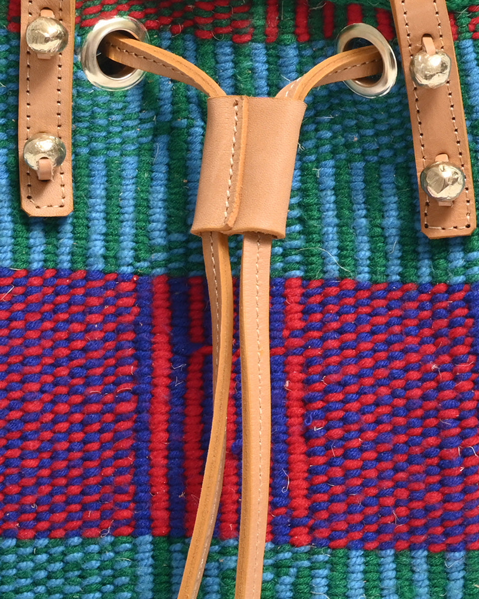 Unsere farbenfrohen, gewebten Beuteltaschen und Rucksäcke sind die ultimative Sommertasche und das perfekte Festival-Accessoire und werden von Frauen, die in einer Webkooperative in Kenia arbeiten, in einzigartigen Stammesdesigns handgewebt. Die Metallperlennieten sind durch und durch nachhaltig und werden von Kunsthandwerkern aus dem Slum Kawangware in Nairobi aus recyceltem und sandgegossenem Messing hergestellt.