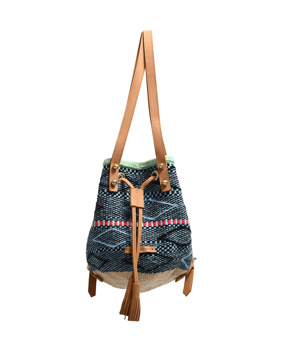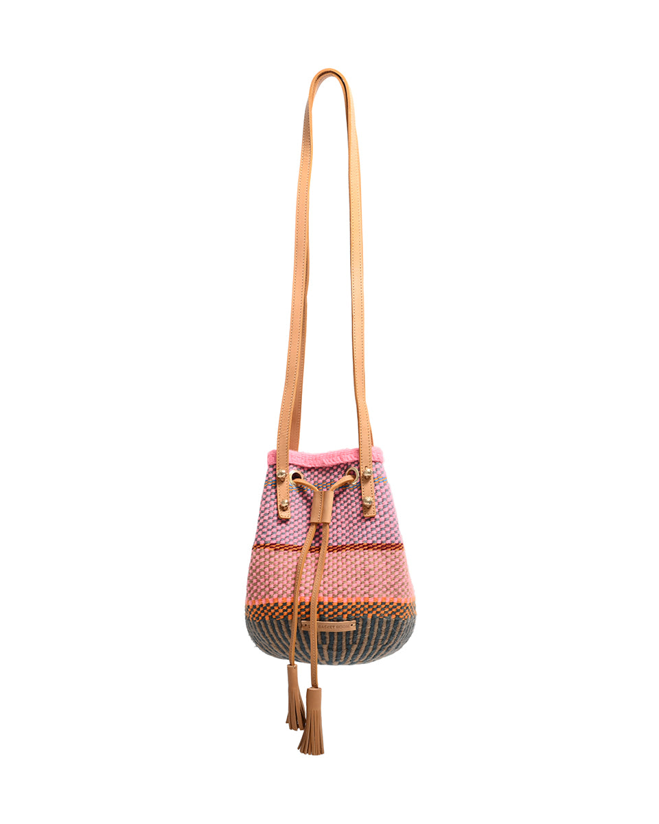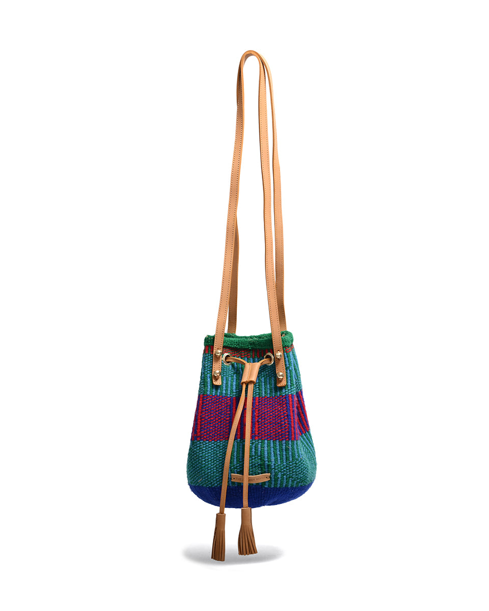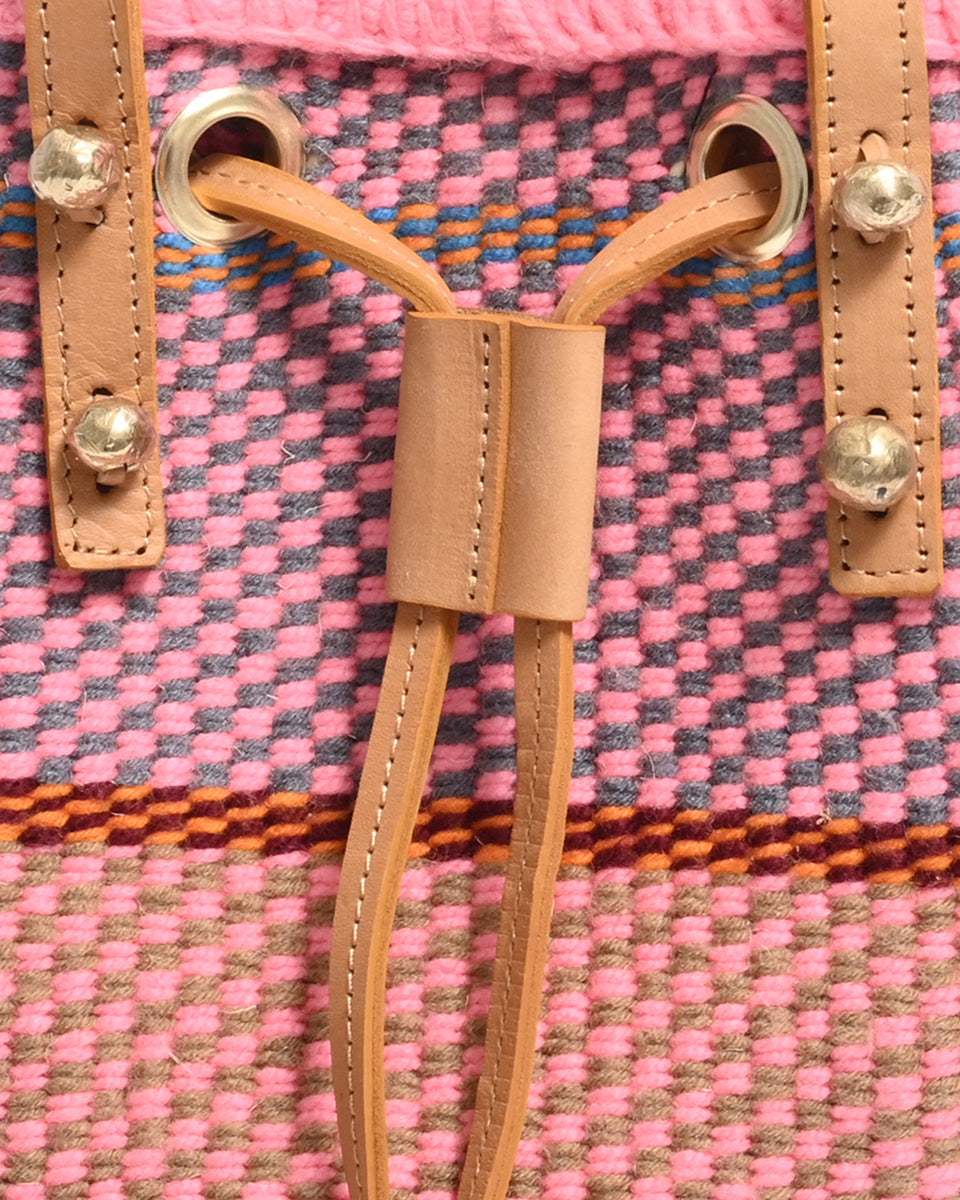 Unsere farbenfrohen, gewebten Beuteltaschen und Rucksäcke sind die ultimative Sommertasche und das perfekte Festival-Accessoire und werden von Frauen, die in einer Webkooperative in Kenia arbeiten, in einzigartigen Stammesdesigns handgewebt. Die Metallperlennieten sind durch und durch nachhaltig und werden von Kunsthandwerkern aus dem Slum Kawangware in Nairobi aus recyceltem und sandgegossenem Messing hergestellt.