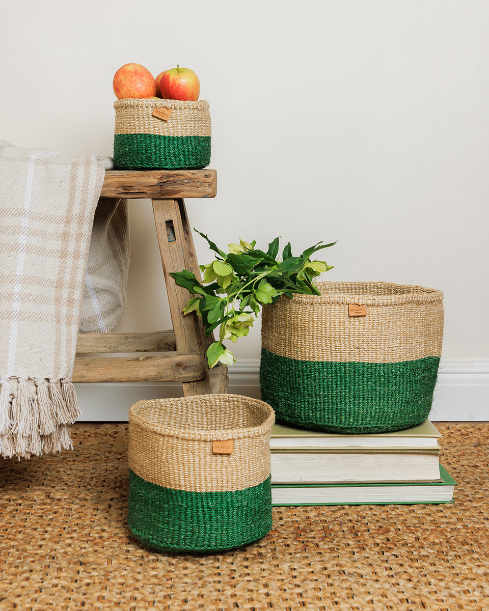 Mit einer Auswahl kreativer Farbkombinationen, die einen echten kenianischen Farbtupfer bieten und Freude in jede Ecke des Zuhauses bringen, haben wir auch das Colour-Blocking auf die nächste Stufe gehoben. Die exklusiv von The Basket Room entworfene Duo Color Block-Kollektion reicht von Pastelltönen bis hin zu hellen Juwelentönen.