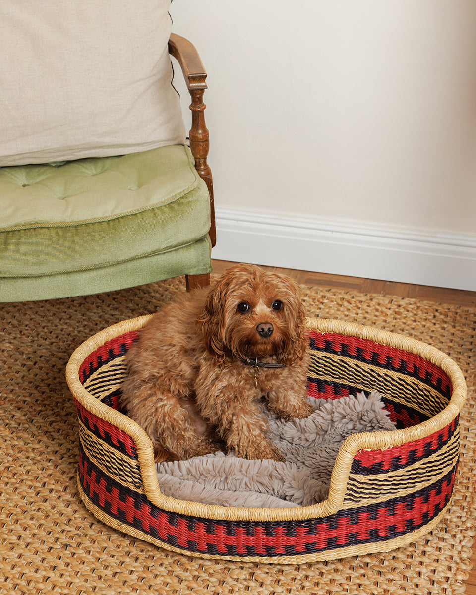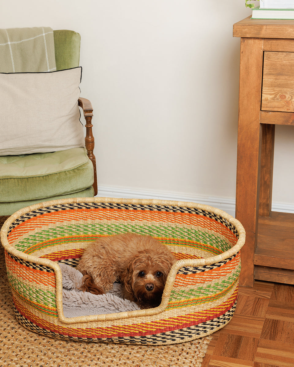 Schaffen Sie einen attraktiven und gemütlichen Schlafplatz für Ihren vierbeinigen Freund mit einem unserer atemberaubenden handgeflochtenen Hundekörbe, die ethisch und nachhaltig in Ghana aus robusten Veta-Vera-Gräsern hergestellt werden. Wählen Sie aus drei verschiedenen Hundekorbgrößen und vielen schönen Designs: Wir haben ein Farbschema, das zu jedem Einrichtungsstil passt, und eine Größe, die zu praktisch jeder Hunderasse passt!