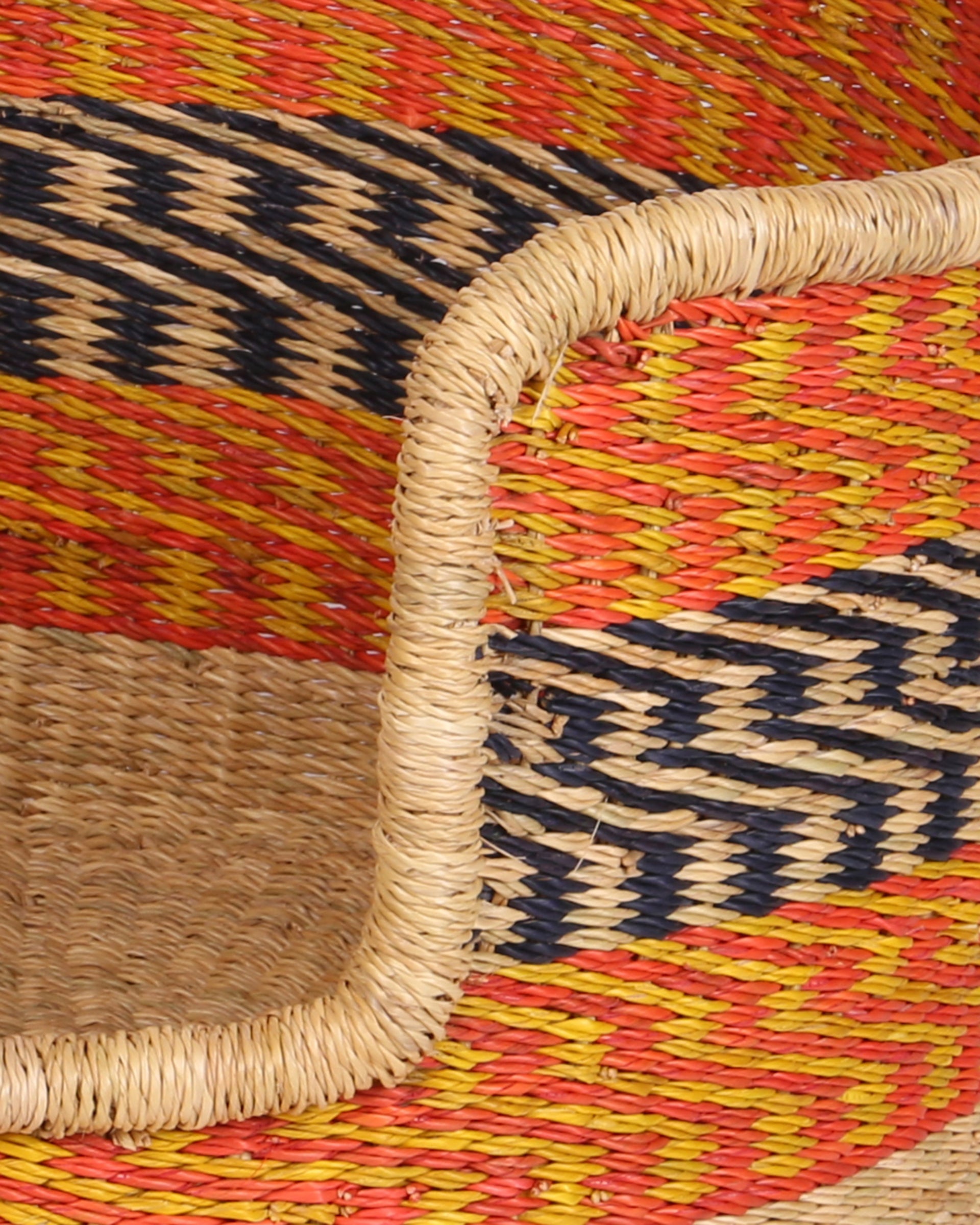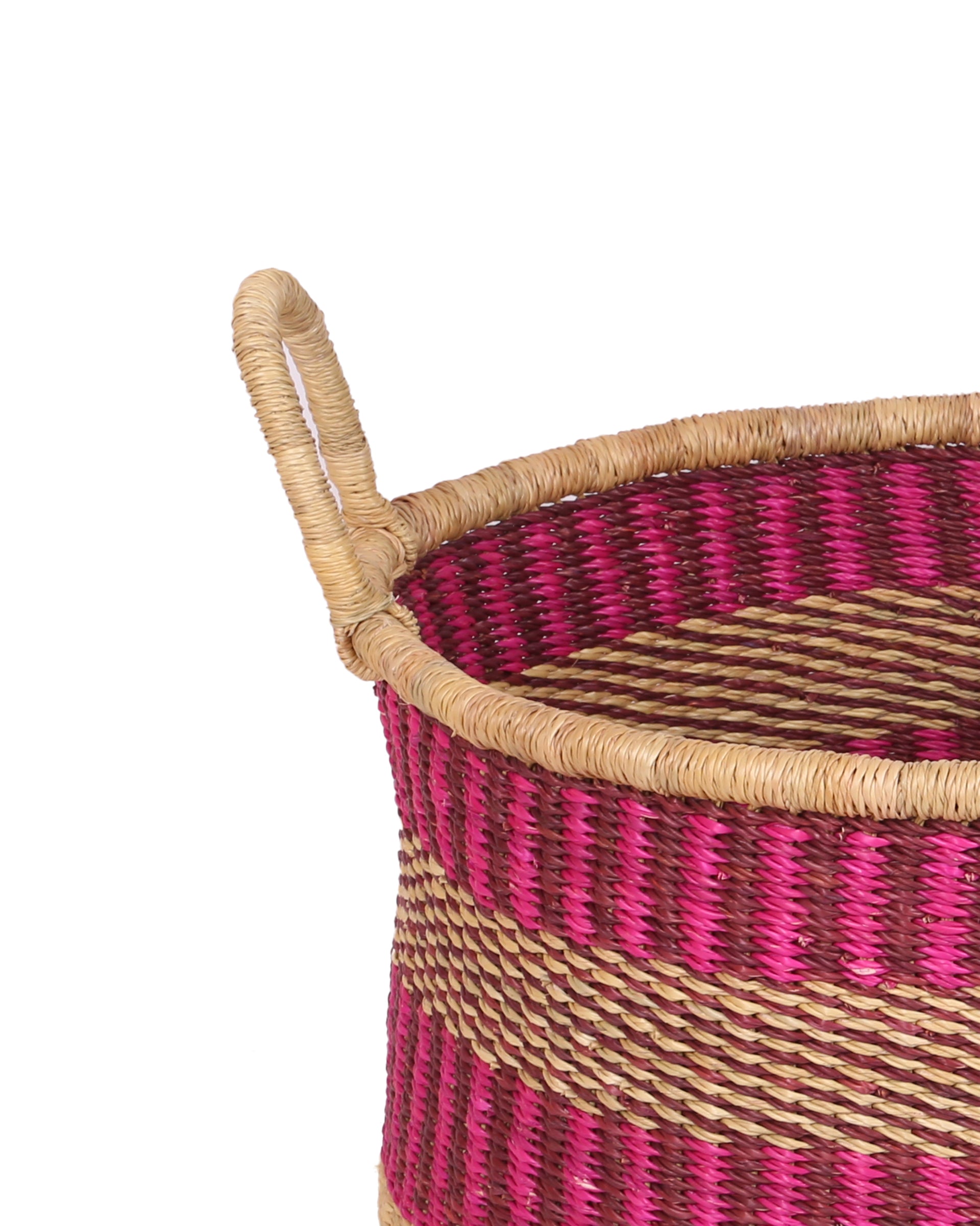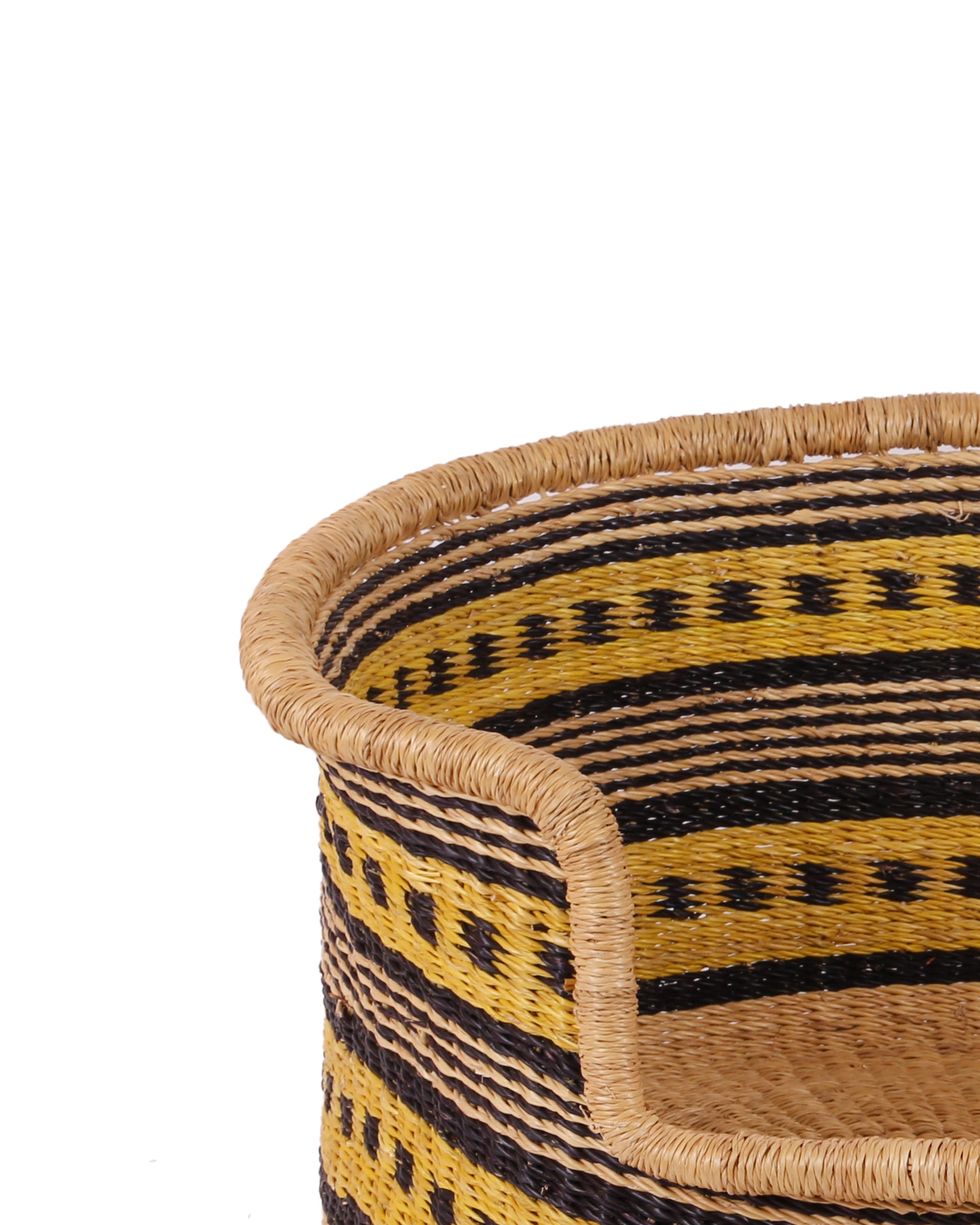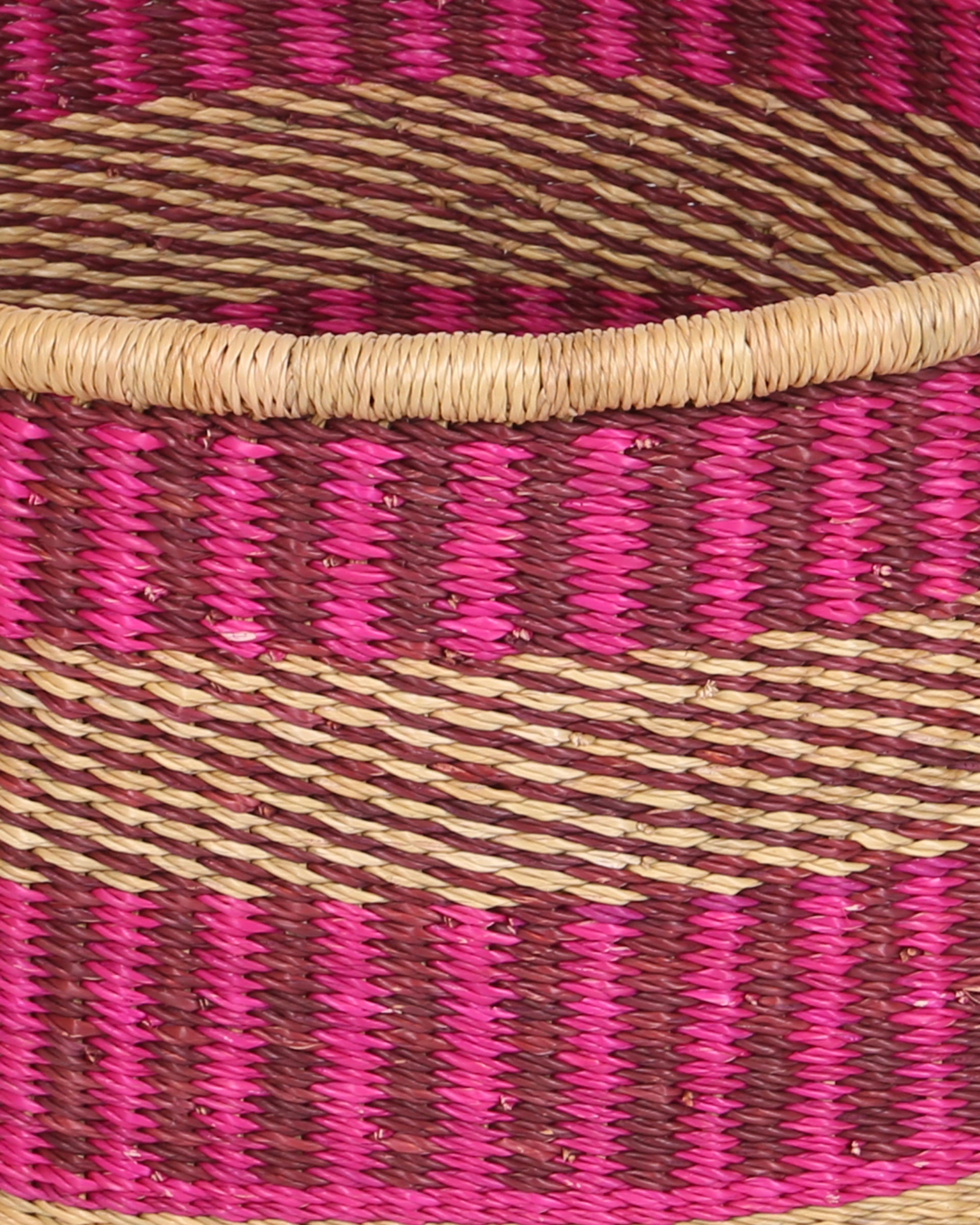 Alle unsere Körbe werden in exquisiter Handarbeit in abgelegenen ländlichen Gegenden Afrikas aus natürlichen Materialien hergestellt, ein Stück nach dem anderen, sodass kein Korb dem anderen gleicht. Obwohl alle Anstrengungen unternommen werden, nur das beste Produkt herzustellen, kann es an manchen Stellen zu natürlichen Schönheitsfehlern oder Beulen und Wölbungen sowie zu Schmutzflecken kommen, die manchmal auf den Körben aus recycelter Woll-Sisal-Mischung sichtbar sind. Diese sollten nicht als Mängel missverstanden werden, sondern machen jeden Korb zu einem handgefertigten Produkt, charmant und einzigartig.