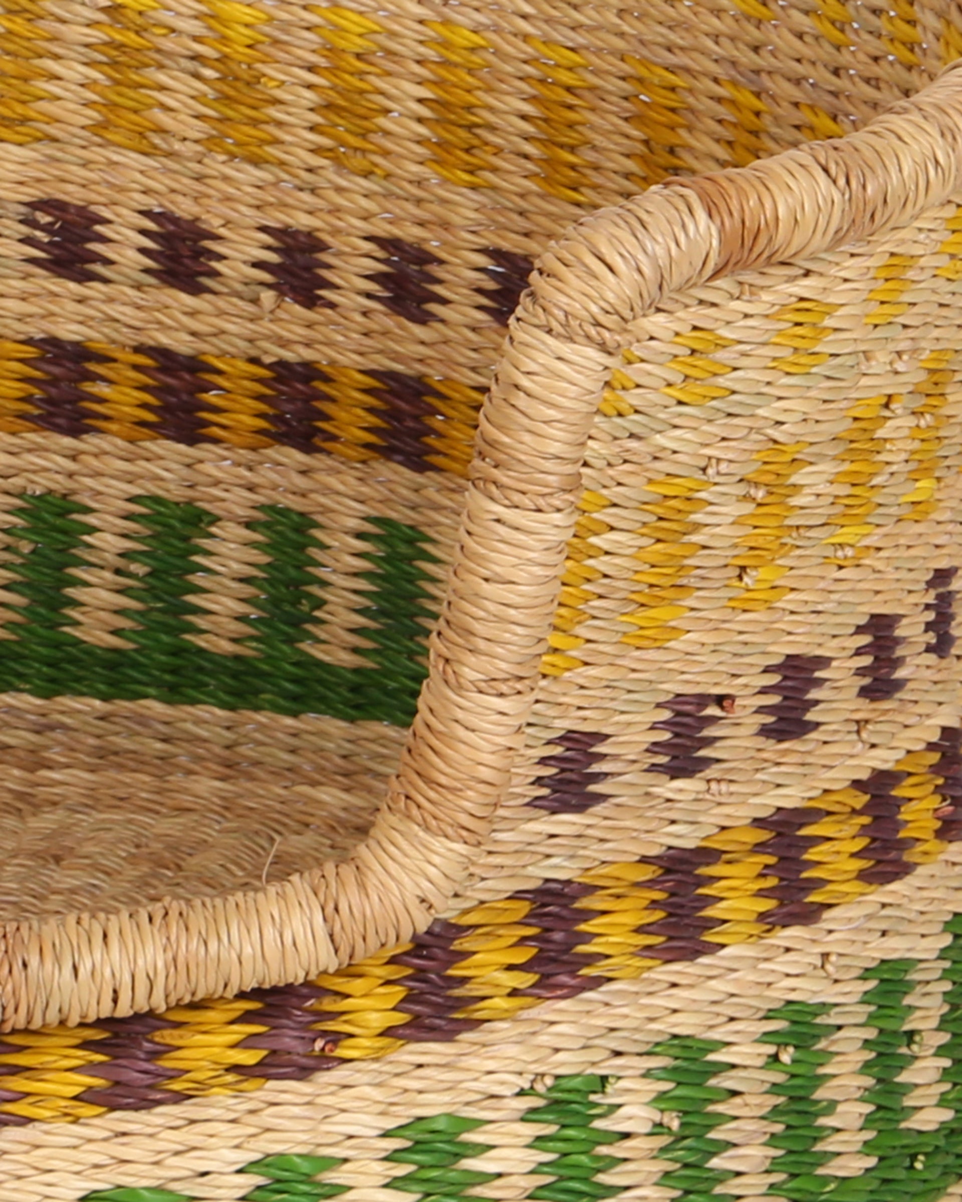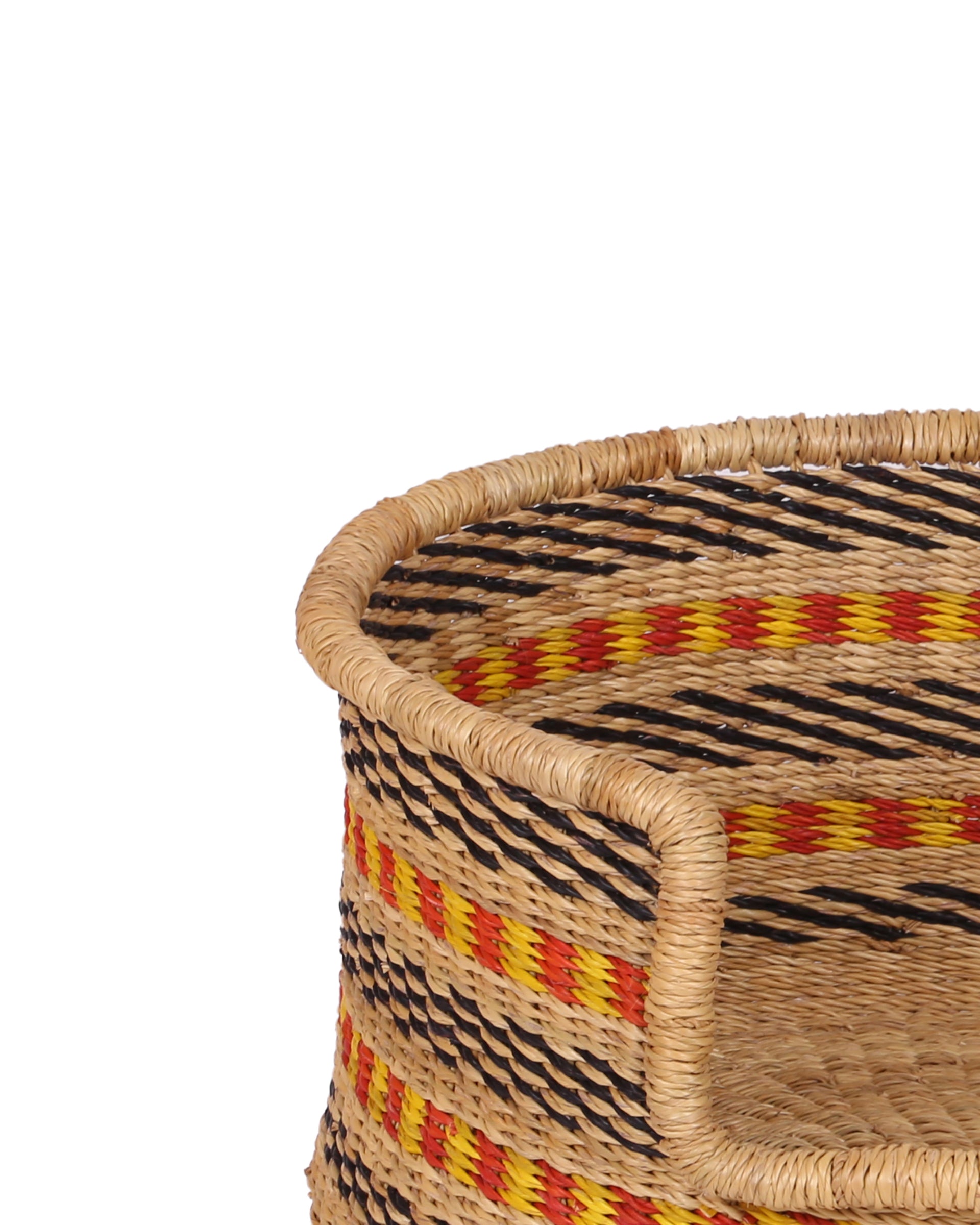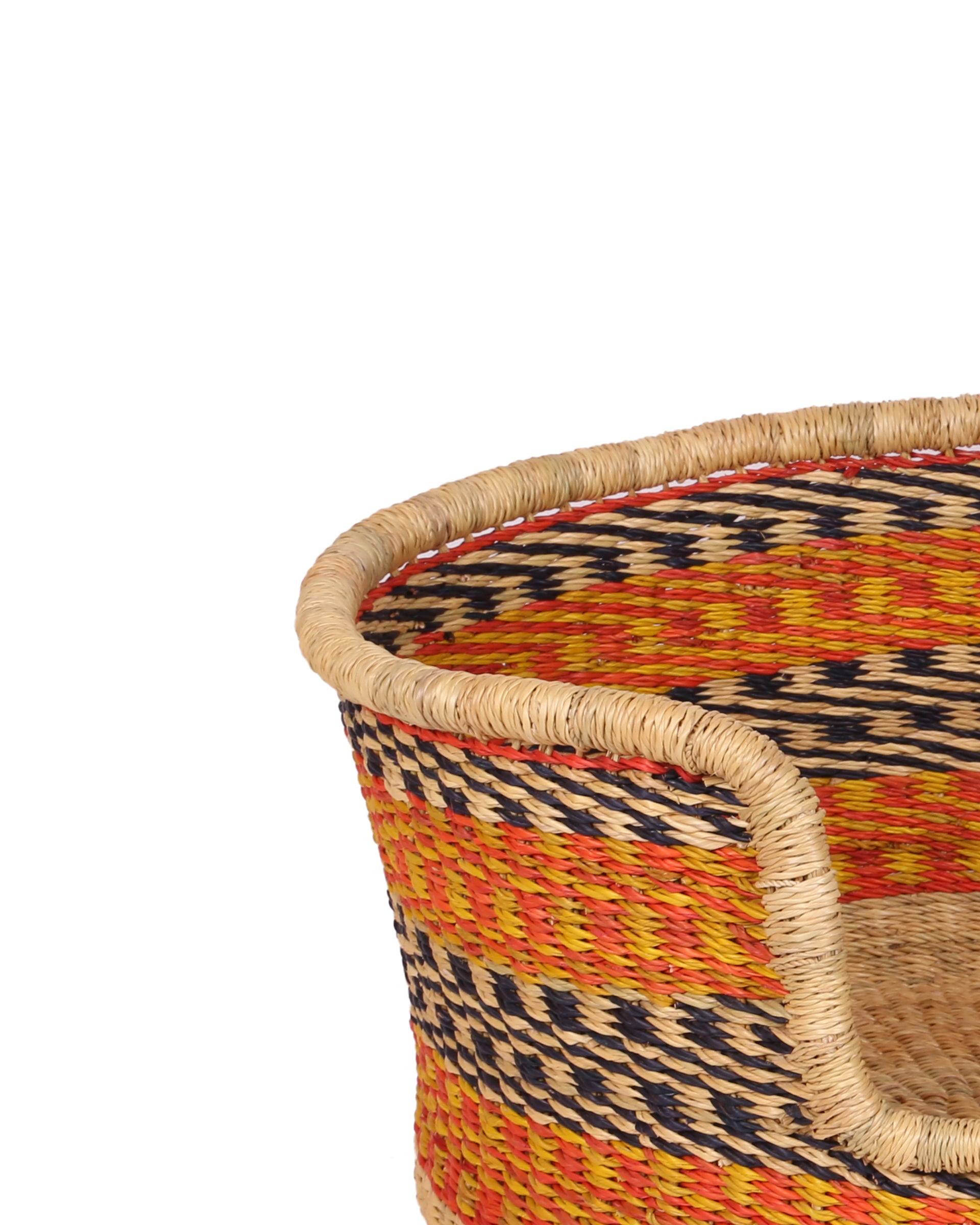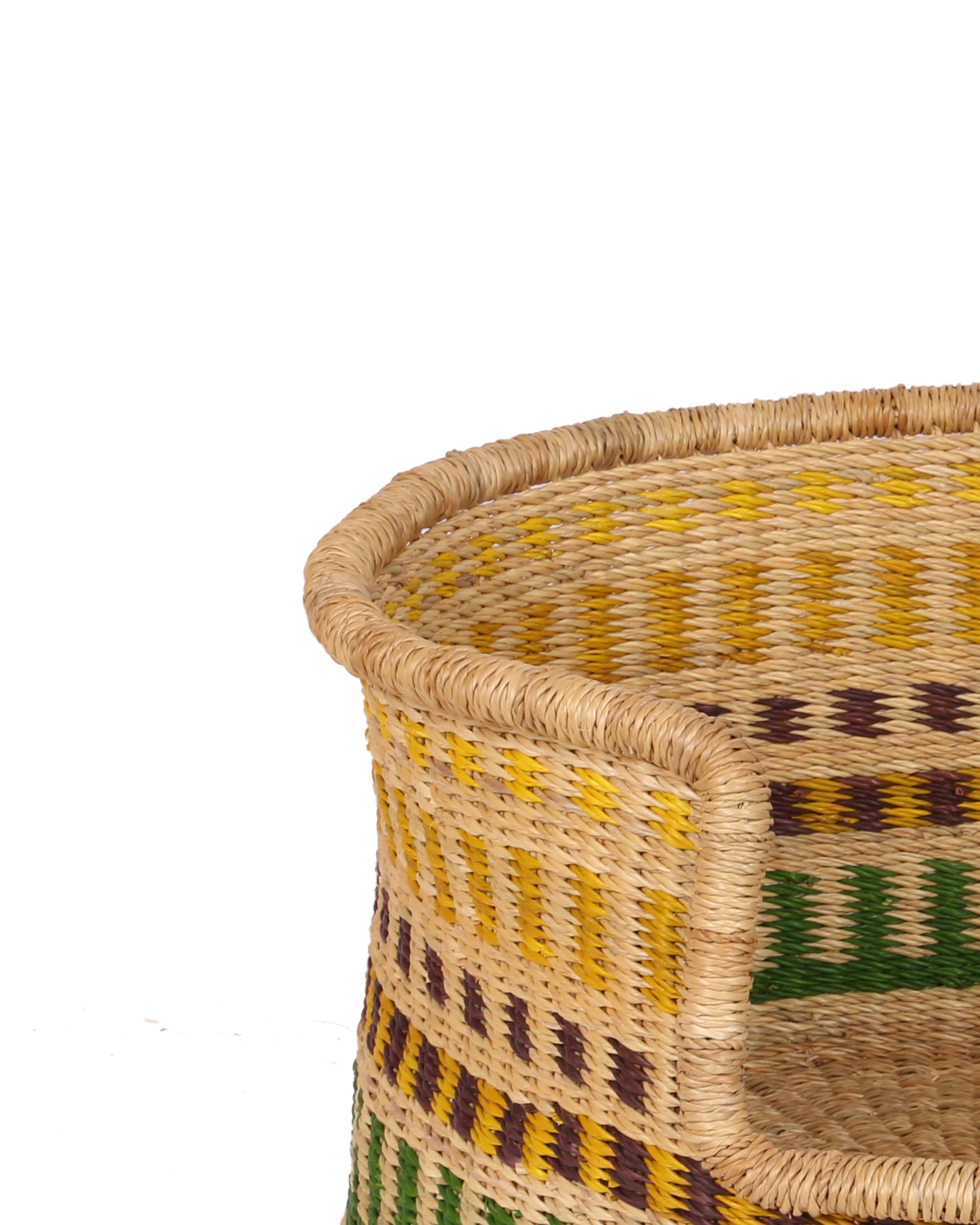 Alle unsere Körbe werden in exquisiter Handarbeit in abgelegenen ländlichen Gegenden Afrikas aus natürlichen Materialien hergestellt, ein Stück nach dem anderen, sodass kein Korb dem anderen gleicht. Obwohl alle Anstrengungen unternommen werden, nur das beste Produkt herzustellen, kann es an manchen Stellen zu natürlichen Schönheitsfehlern oder Beulen und Wölbungen sowie zu Schmutzflecken kommen, die manchmal auf den Körben aus recycelter Woll-Sisal-Mischung sichtbar sind. Diese sollten nicht als Mängel missverstanden werden, sondern machen jeden Korb zu einem handgefertigten Produkt, charmant und einzigartig.