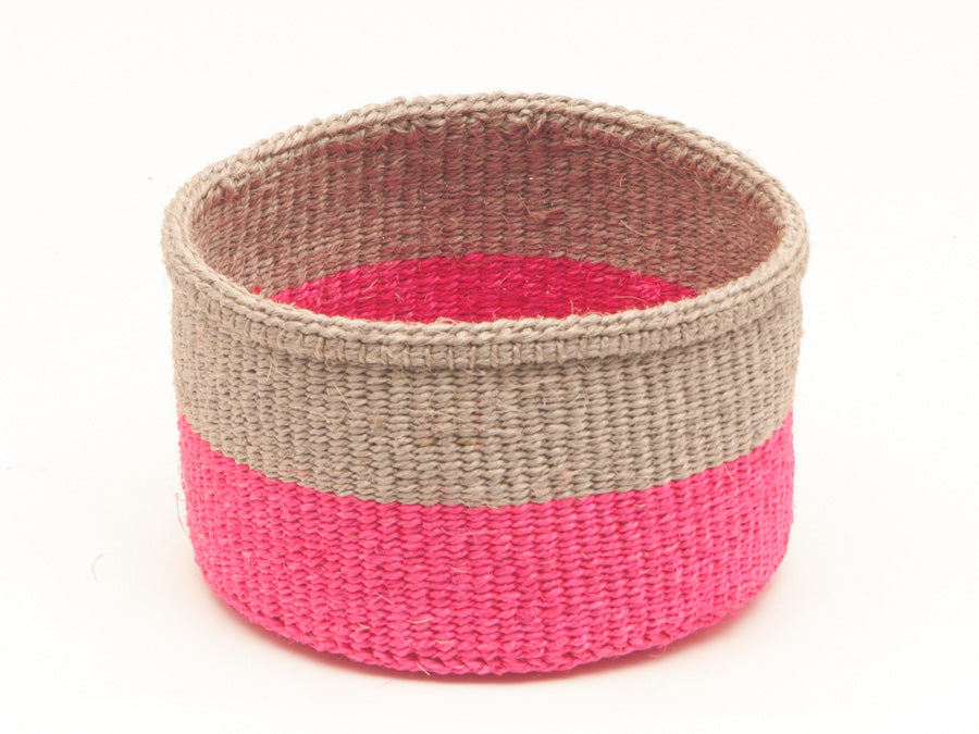 MALIZA: Geflochtener Korb im Farbblock-Design in Grau und Neonrosa