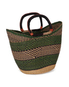 This exquisite MPRAESO hand woven market basket has been produced in the traditional Ghanaian bolga basket style. Boasting tribal patterns of green and black, this basket is perfect for market trips or picnics, or used as a stylish solution to home storage. Fill with blankets, kindling, craft projects or toys – you’ll keep finding new uses for yours! Every market basket in this collection is unique – made once and sold once.