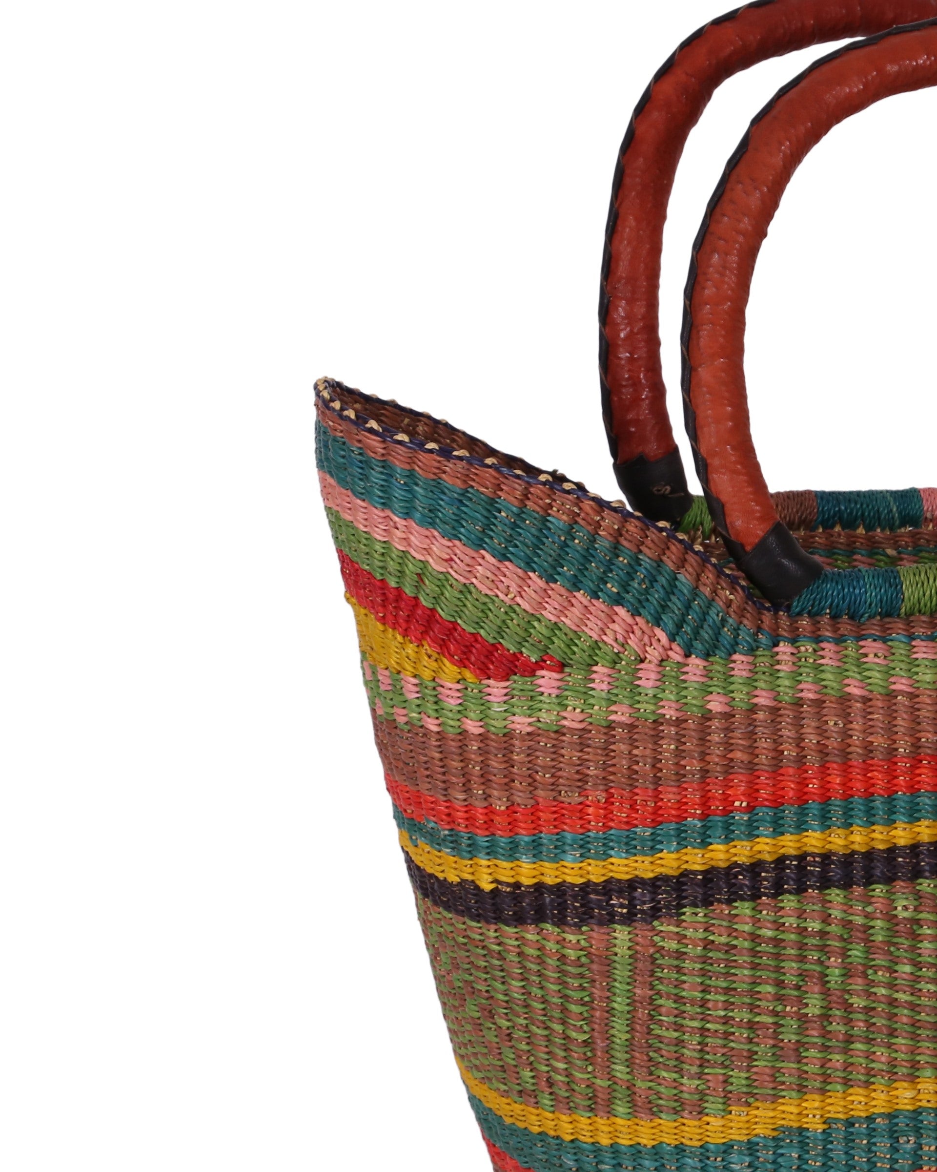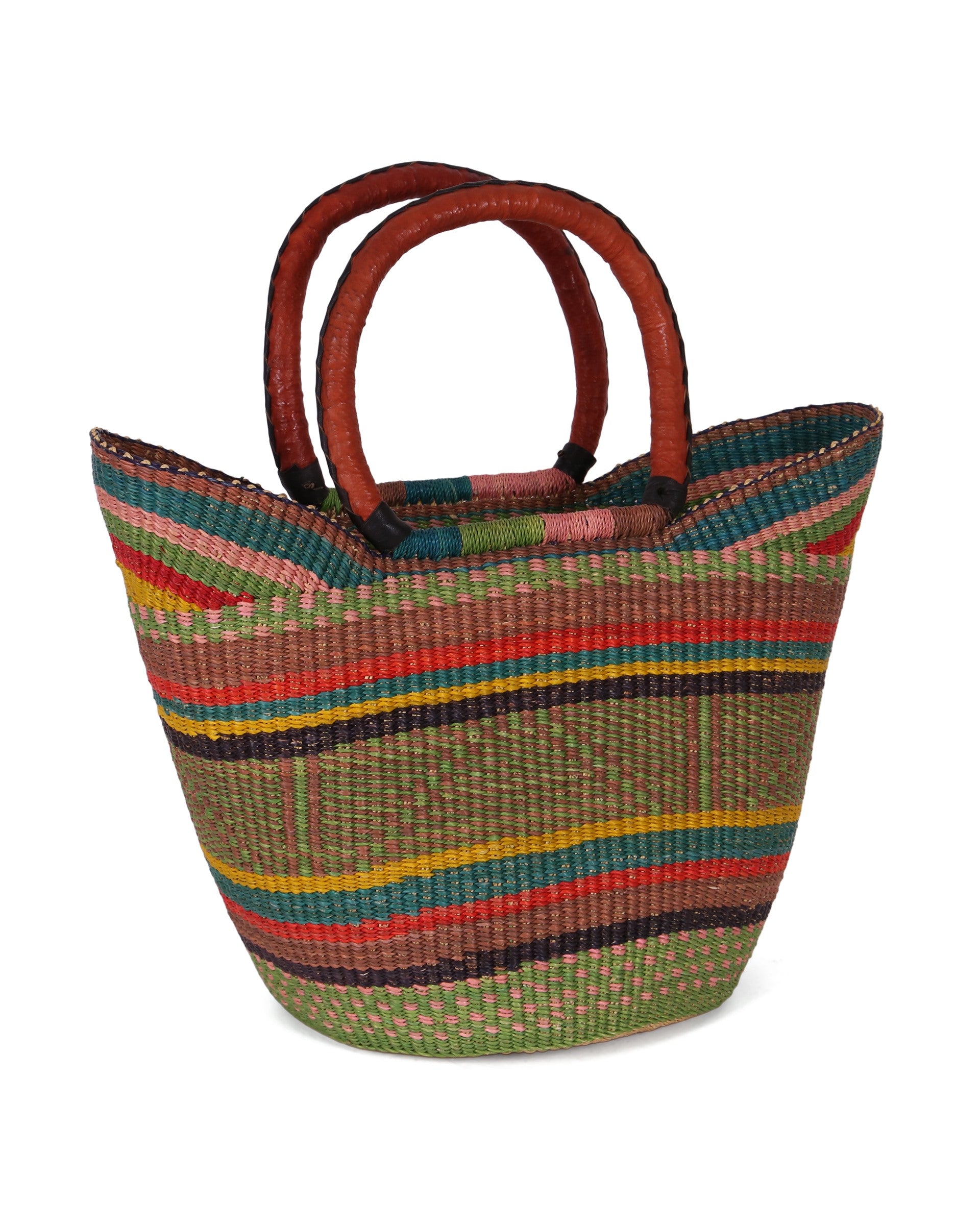 This exquisite NKWANTA hand woven market basket has been produced in the traditional Ghanaian bolga basket style. Boasting tribal patterns of green, red, blue and yellow, this basket is perfect for market trips or picnics, or used as a stylish solution to home storage. Fill with blankets, kindling, craft projects or toys – you’ll keep finding new uses for yours! Every market basket in this collection is unique – made once and sold once.