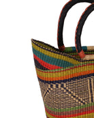 This exquisite PRESTEA hand woven market basket has been produced in the traditional Ghanaian bolga basket style. Boasting tribal patterns of green, orange and blue, this basket is perfect for market trips or picnics, or used as a stylish solution to home storage. Fill with blankets, kindling, craft projects or toys – you’ll keep finding new uses for yours! Every market basket in this collection is unique – made once and sold once.