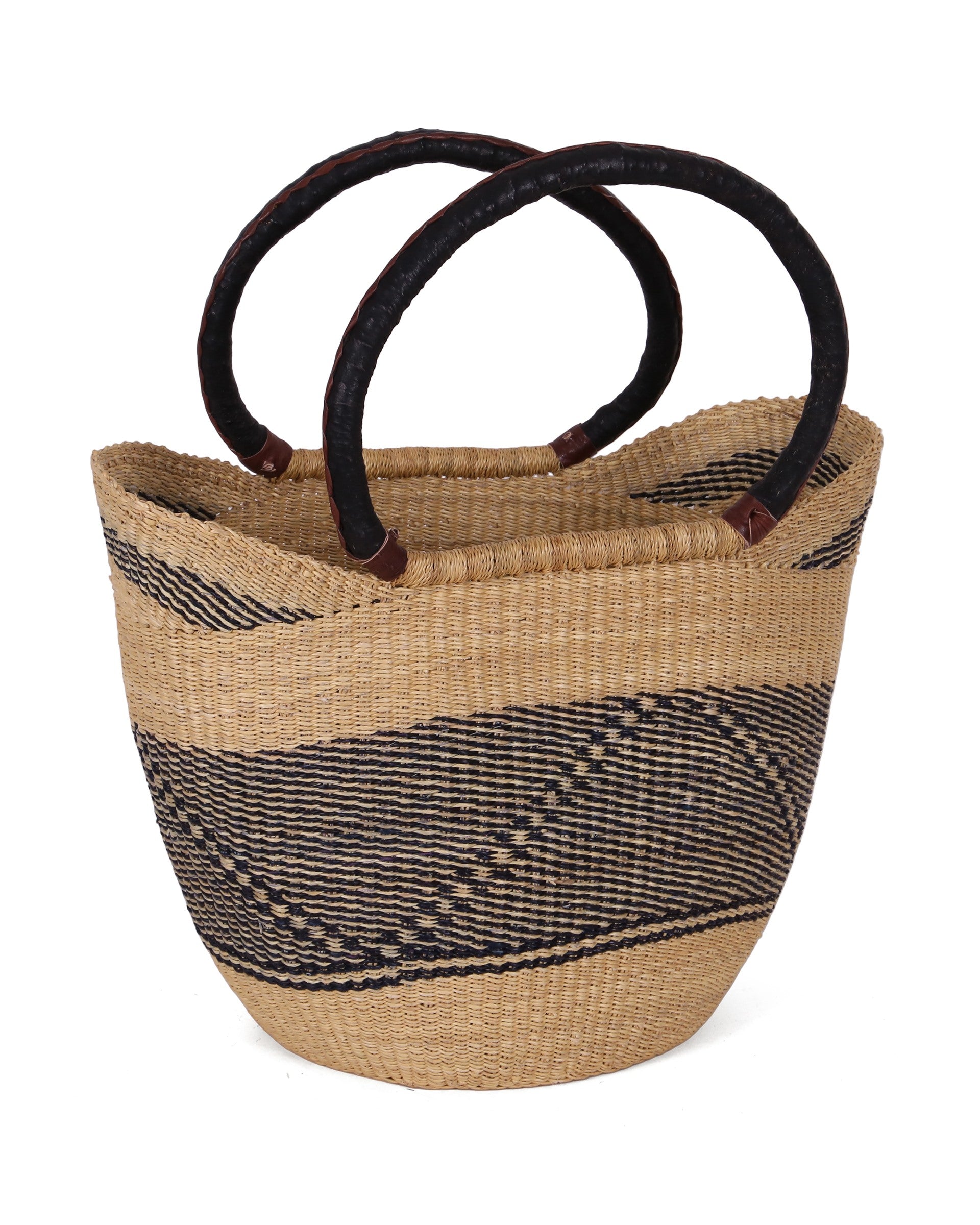 This exquisite SAVELUGU hand woven market basket has been produced in the traditional Ghanaian bolga basket style. Boasting tribal patterns of black and natural, this basket is perfect for market trips or picnics, or used as a stylish solution to home storage. Fill with blankets, kindling, craft projects or toys – you’ll keep finding new uses for yours! Every market basket in this collection is unique – made once and sold once.