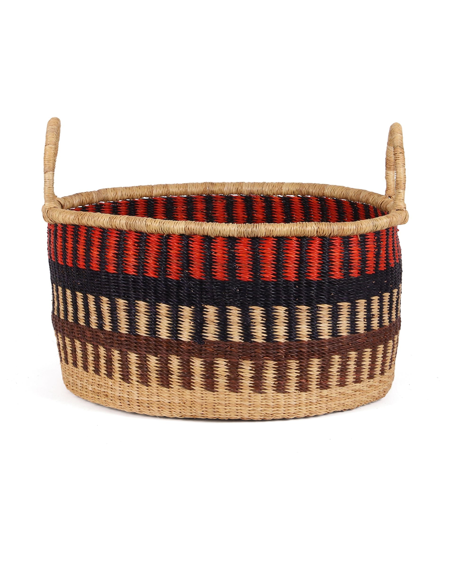 SIBIRI: Medium Orange, Black and Brown Floor Storage Basket with Handles
