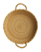 SENYA: Natural Round Woven Drinks Serving Tray with Handles