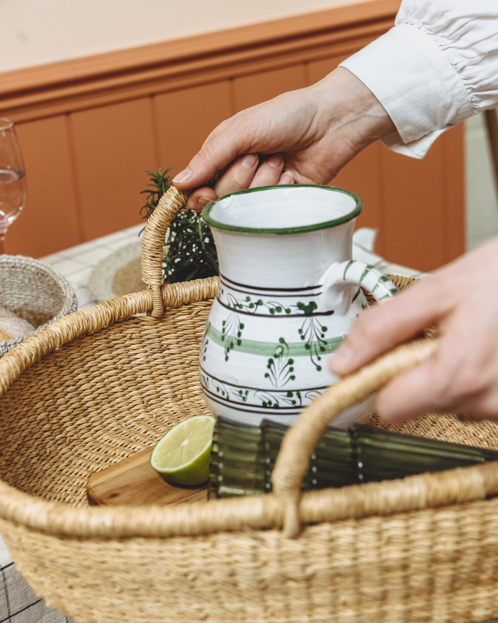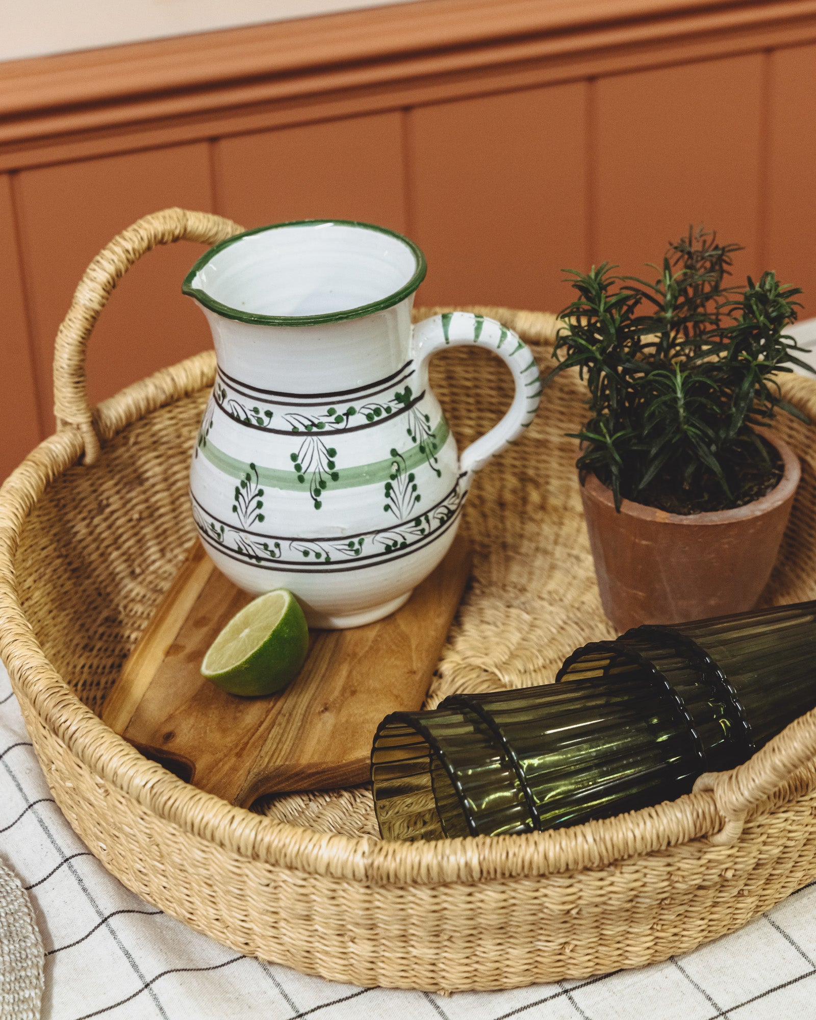 This handwoven tray also makes a useful and stylish place to display trinkets and treasures on a sideboard: picture it arranged with your fanciest scented candle, a vase of dried flowers, and a book. You could even use this versatile tray as a delightful bread basket.
