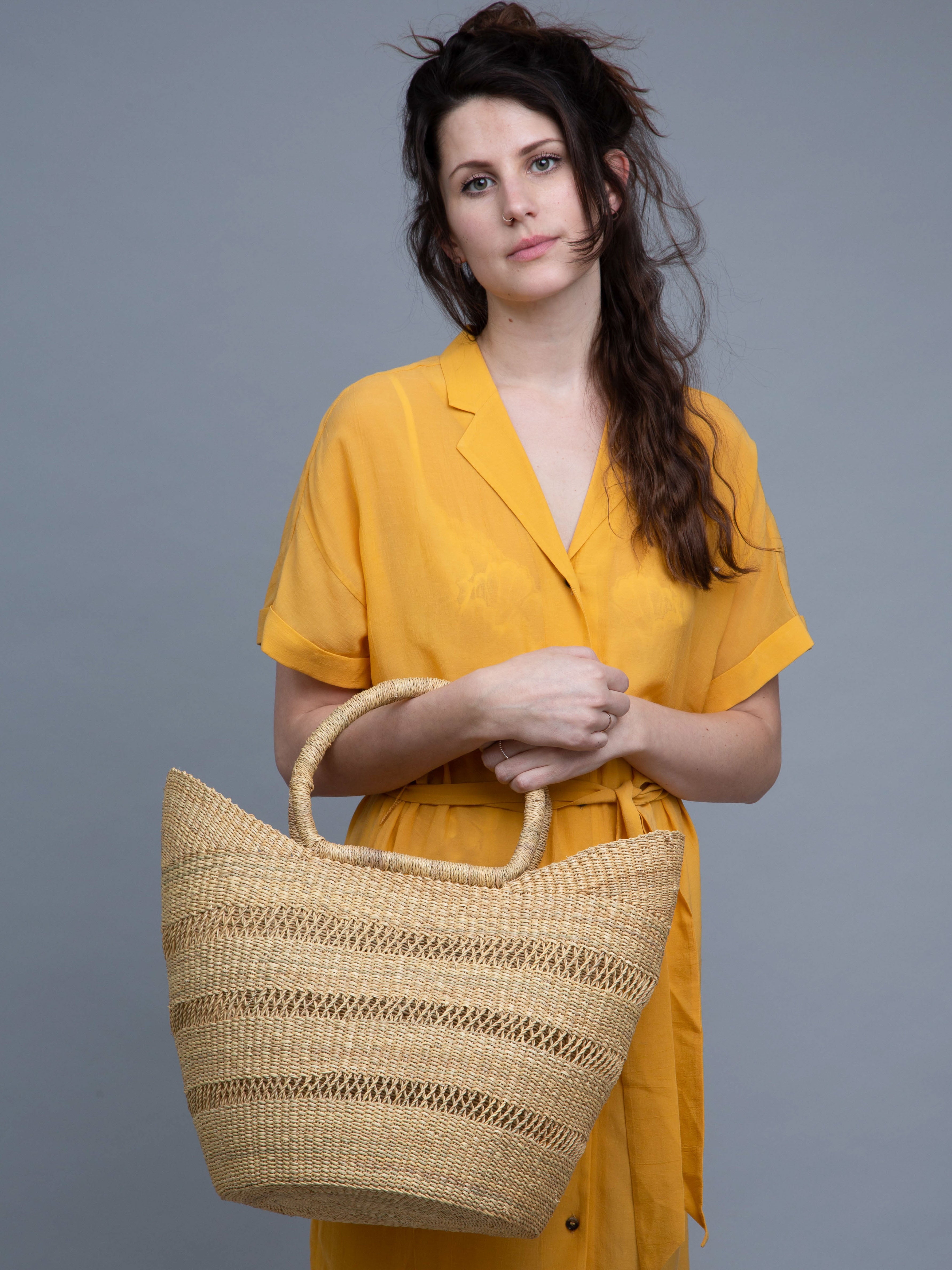 There’s a handwoven basket bag to suit every style in our beautiful African basket collections. Choose from exquisitely patterned yarn and sisal basket bags handwoven by women of the Kamba tribe in rural Kenya, and sturdy Ghanaian market baskets in bold colours and natural tones. Our Nifty Knit bucket bags and woven backpacks are the perfect holiday or festival accessory, and our striped shoppers are not only super striking but very on trend. Within this collection you’ll also find chic palm beach bags, woven crossbody bags and jumbo woven totes for weekends away.