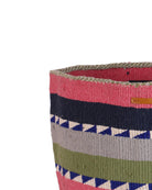A gorgeous floor basket with pink, navy and green, KITIWEO is hand woven by a highly skilled member of the Kamba tribe in Kenya using local sisal and yarns from second hand woolly jumpers. Each one of these Nifty Knit baskets is unique, so there’s only one KITIWEO in the world. These XL baskets make perfect planters for your large houseplants and will also store logs, throws and rugs, shoes and slippers, laundry or playroom toys. The beauty of these woven baskets is that you’ll keep finding uses for them as the years go by.