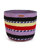A gorgeous floor basket with purple, yellow and red, MATUNDA is hand woven by a highly skilled member of the Kamba tribe in Kenya using local sisal and yarns from second hand woolly jumpers. Each one of these Nifty Knit baskets is unique, so there’s only one MATUNDA in the world. These XL baskets make perfect planters for your large houseplants and will also store logs, throws and rugs, shoes and slippers, laundry or playroom toys. The beauty of these woven baskets is that you’ll keep finding uses for them as the years go by.