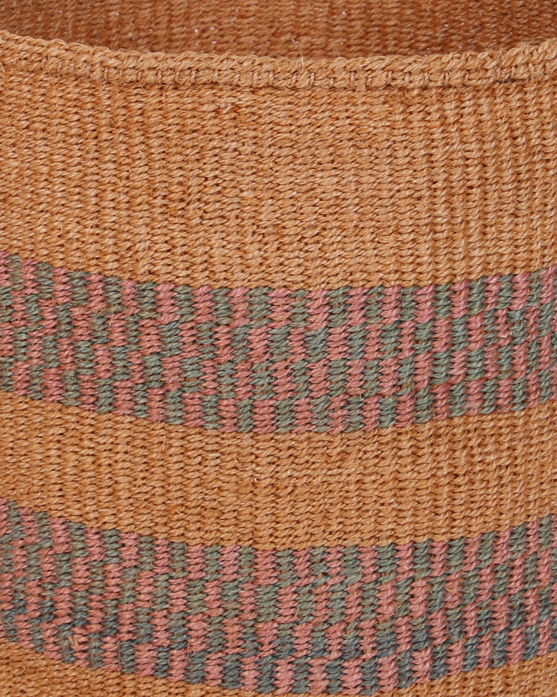 The SAHARA was hand-woven and hand-dyed in rural Kenya from hand-stripped, hand-rolled sisal grass. Its maker? An extremely talented craftswoman working within a weaving cooperative in Kenya’s rural Coastal Region. This most artistic group produce unique woven baskets to their own personal designs, choosing the patterns and dyes that best showcase their talents. Sisal grass is hand stripped using wooden tools and bare feet, and then it is hand rolled on the thighs before being hand dyed in vats of boiling water.