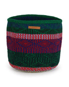 WITU is a gorgeous green, red and blue striped basket with bold colourful bands – a true work of traditional Kenyan craft, handwoven by a member of the Kamba tribe from wool and sisal. No two baskets in this collection are the same since each is made to the weaver’s own unique design. Use yours as a woven planter for your indoor plants, or use yours for storing toys or craft materials, winter accessories and kindling. These beautiful baskets are perfect for decluttering whilst bringing a pop of colour and character to any space.