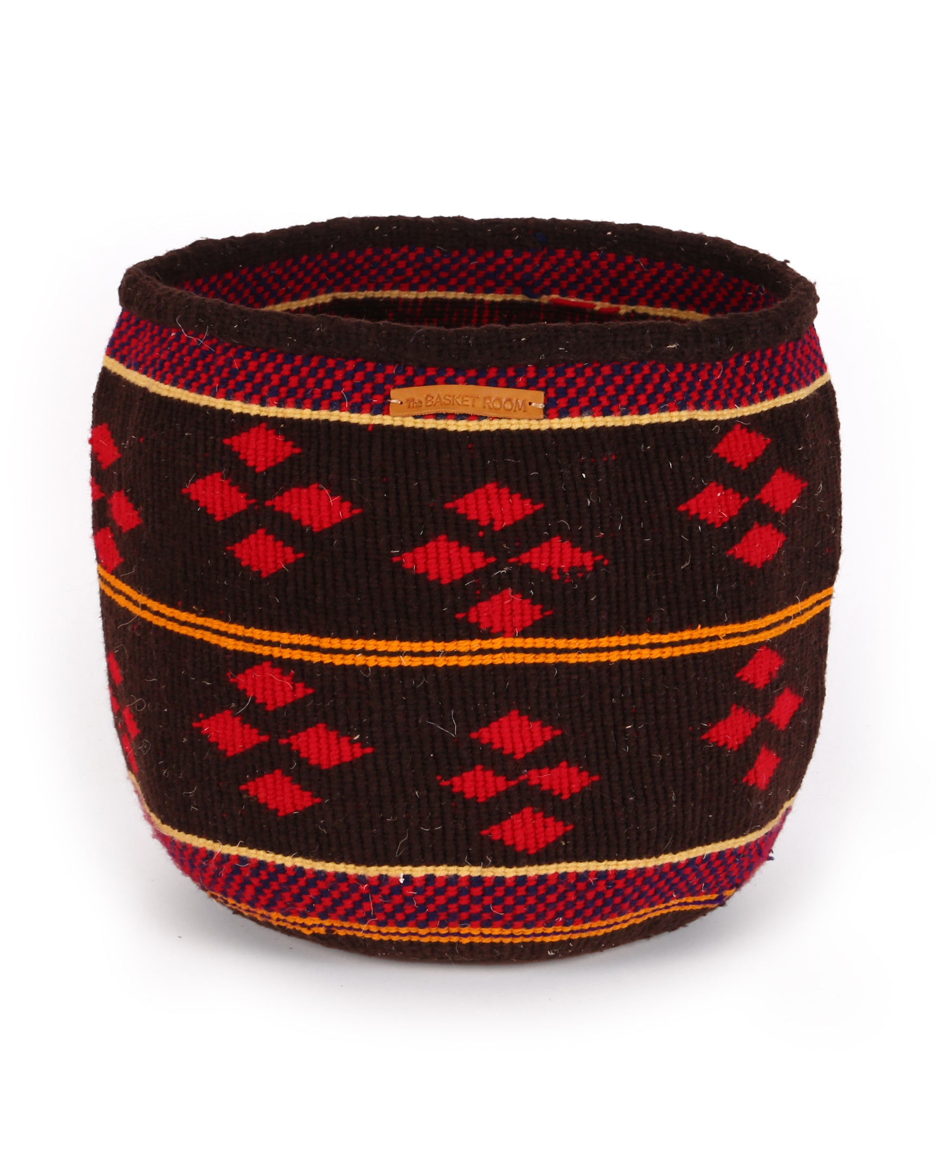 ZAMBARAU: Large Brown, Red, Orange Wool Basket