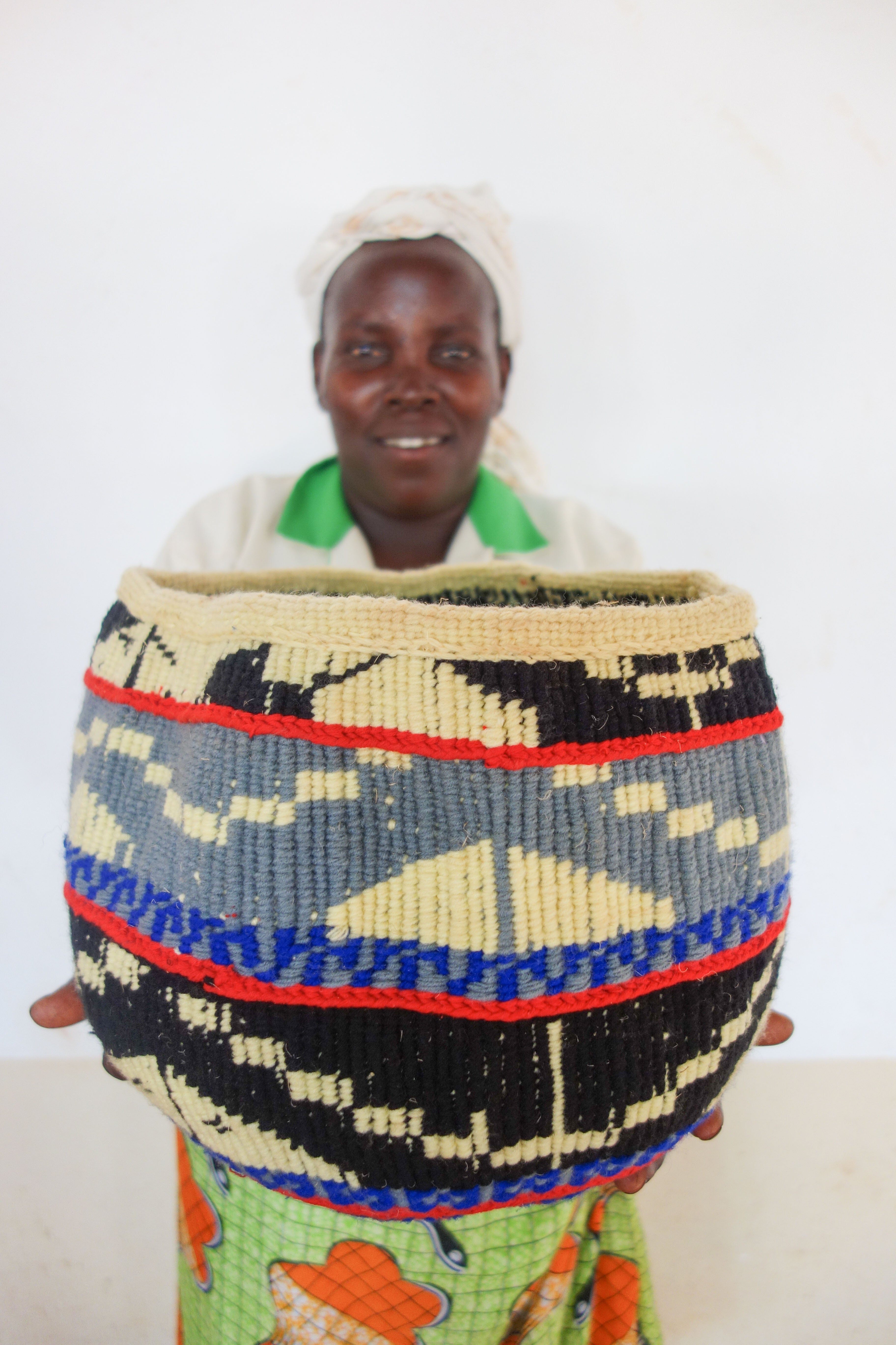 The baskets in our Nifty Knit collection are traditionally known as Kiondos (kee-yon/-dohs) and were woven by mothers as wedding gifts for their daughters. Although the art of kiondo weaving has been declining, we are proud to be able to support the small handful of groups still practicing the woolly craft.