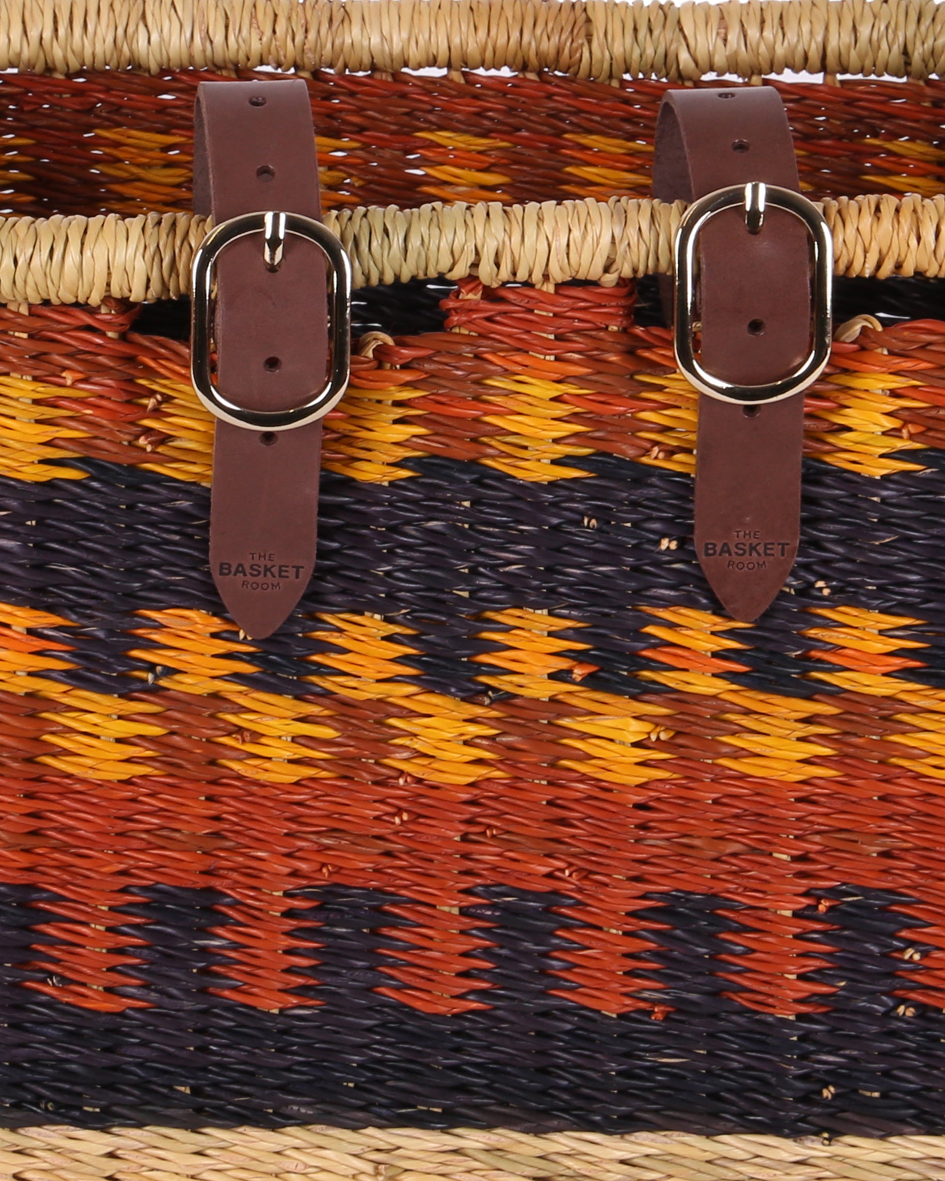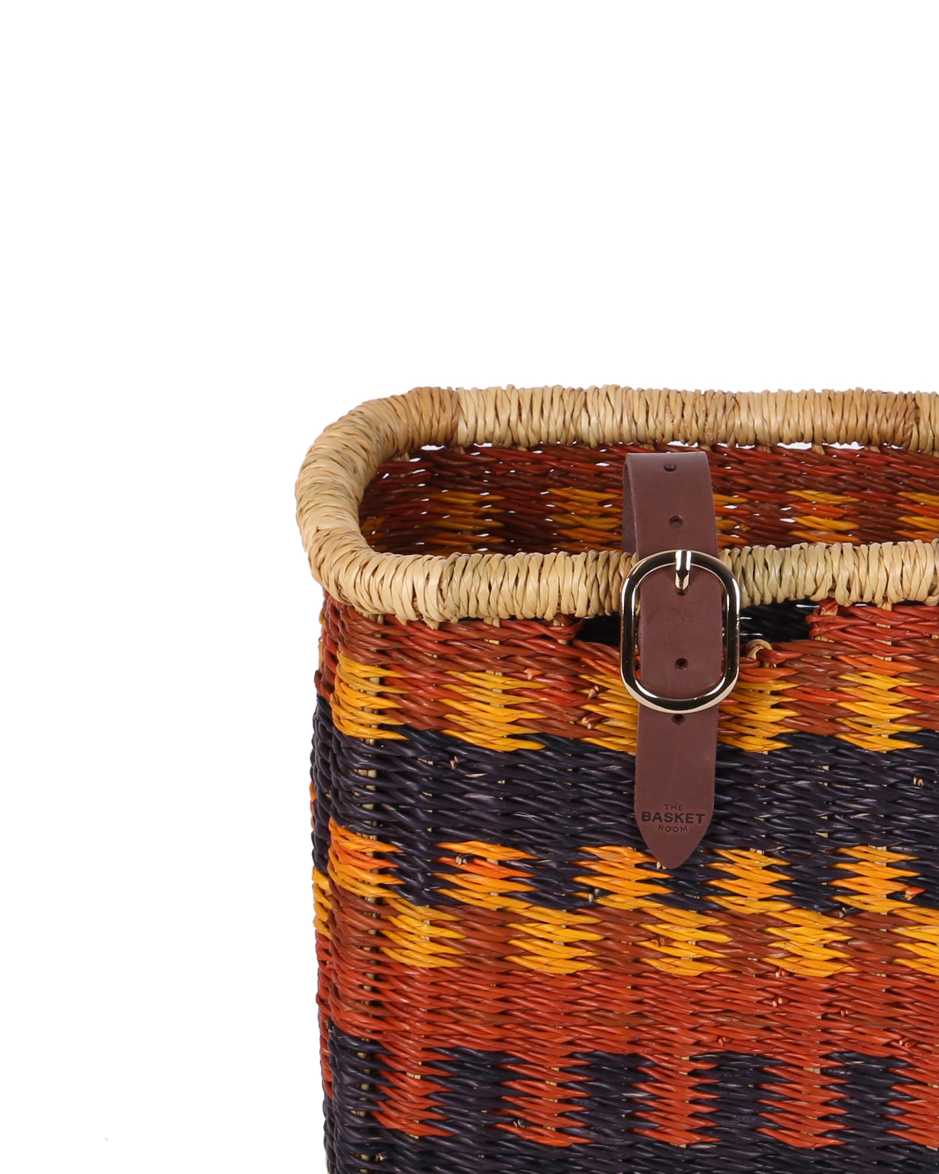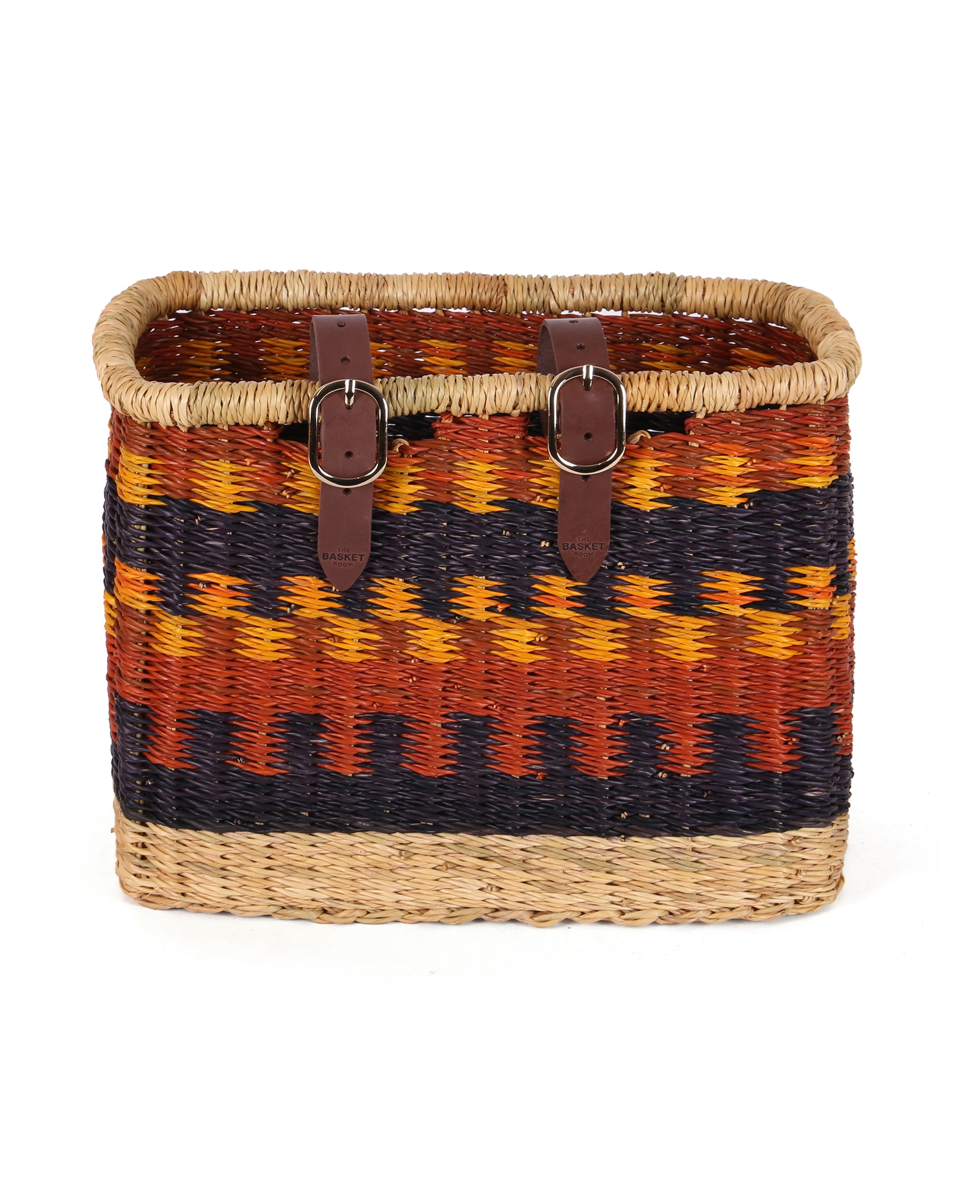 Give those two wheels an instant upgrade with this beautiful rectangular bicycle basket. AHAHAN is a unique, one of a kind bike basket, featuring a striking design in Brown, Orange and Black . Made from robust veta vera grass then colourfully dyed, the weavers have complete creative freedom resulting in exquisite designs that are only ever made once.