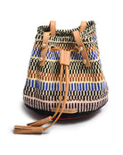 HEKARI: Handwoven Yellow, Black, Brown, Blue Wool Bucket Bag