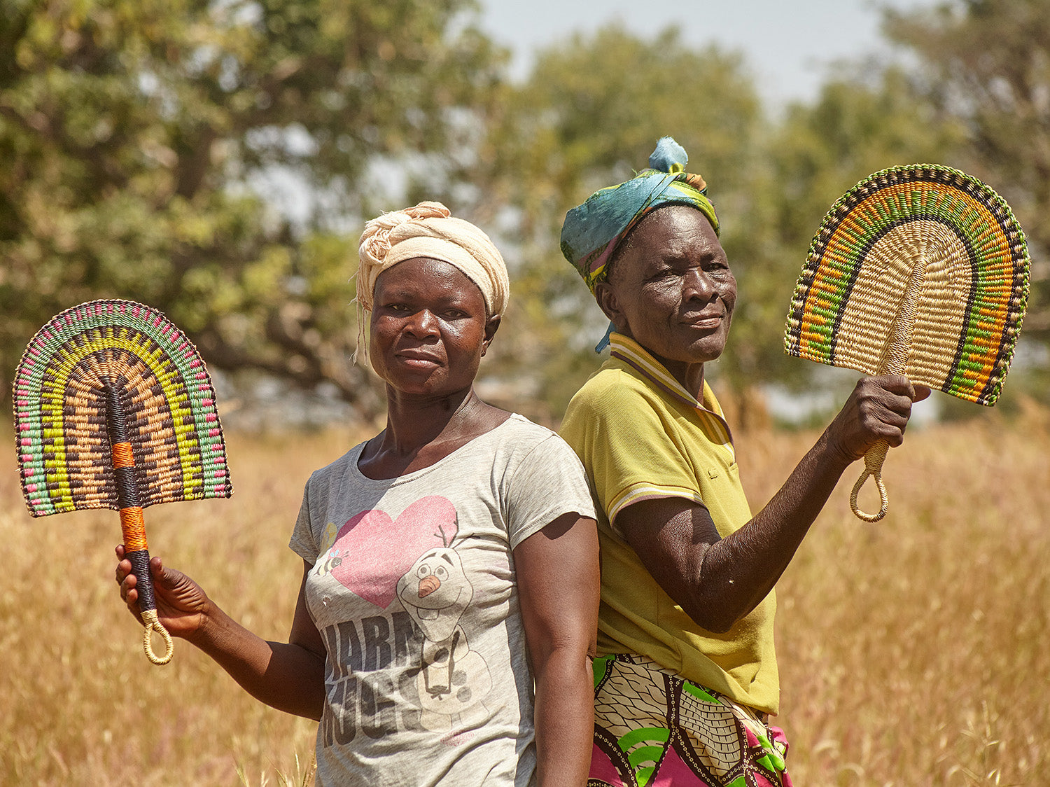 The majority of the weavers who create woven fans are men, having been taught the traditional craft of basket weaving from their own mothers and fathers. Most of these men work in agriculture, but the dry seasons make farming increasingly difficult and unpredictable. Basket weaving brings these people the opportunity to earn a flexible second income.