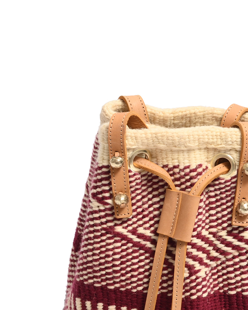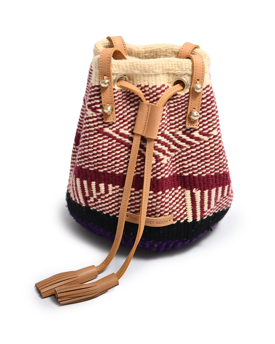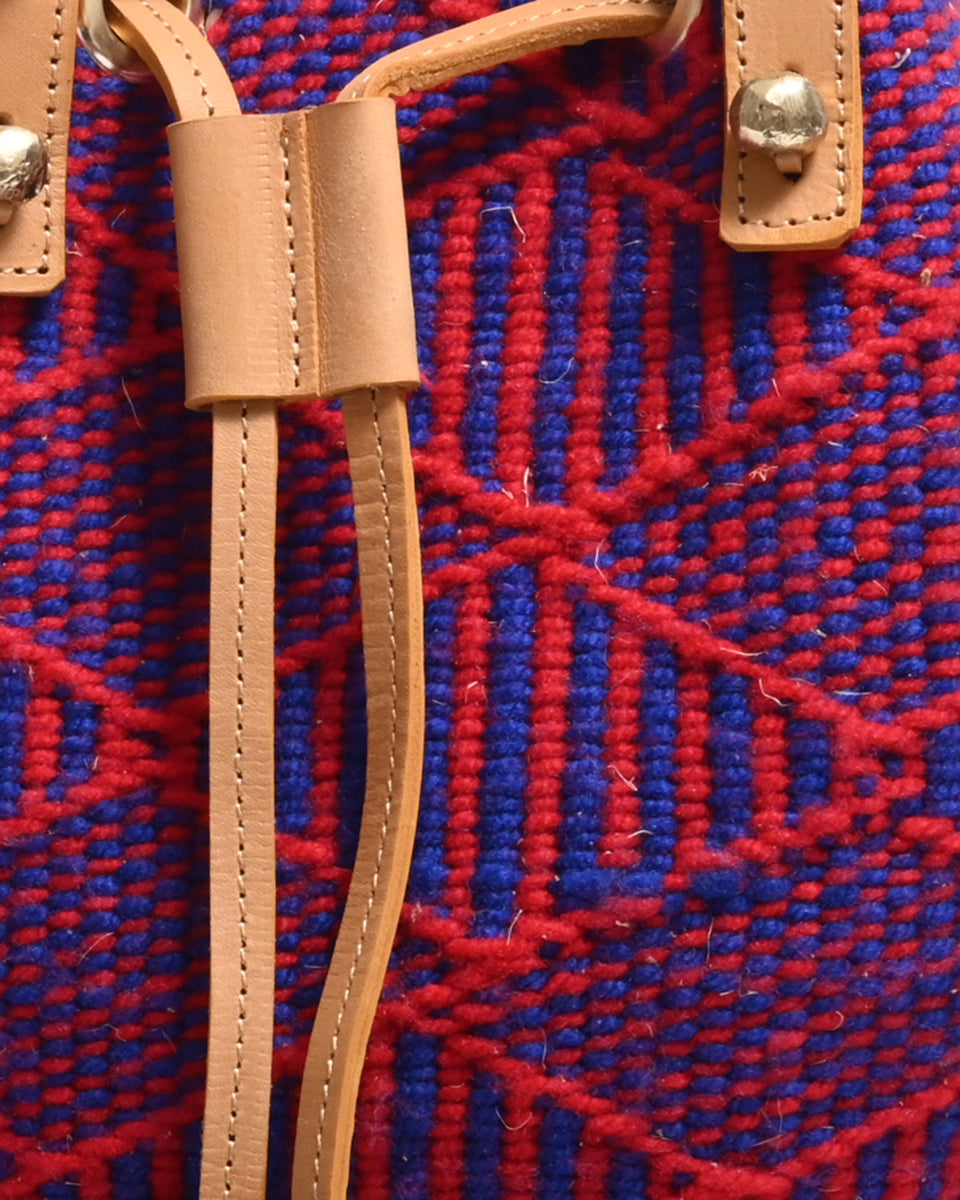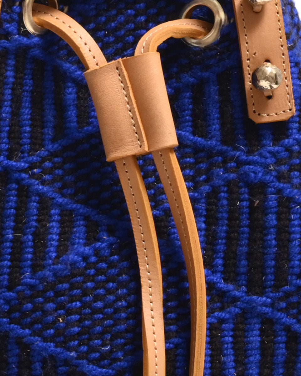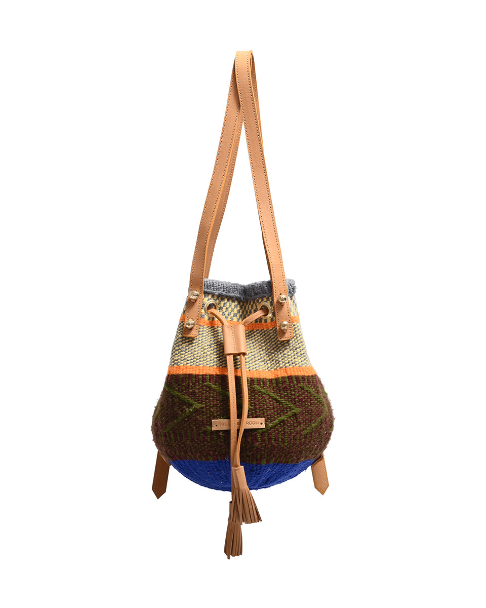 Sac d'été ultime et accessoire de festival parfait, nos sacs seau et sacs à dos tissés colorés sont tissés à la main dans des motifs tribaux uniques par des femmes travaillant au sein d'une coopérative de tissage au Kenya. Durables de bout en bout, les rivets en perles métalliques sont fabriqués à partir de laiton recyclé et coulé au sable par des artisans vivant dans le bidonville de Kawangware à Nairobi.