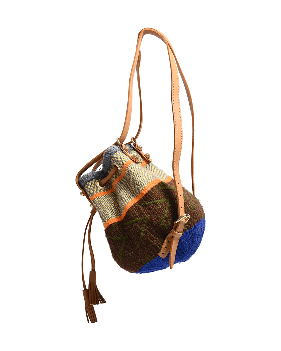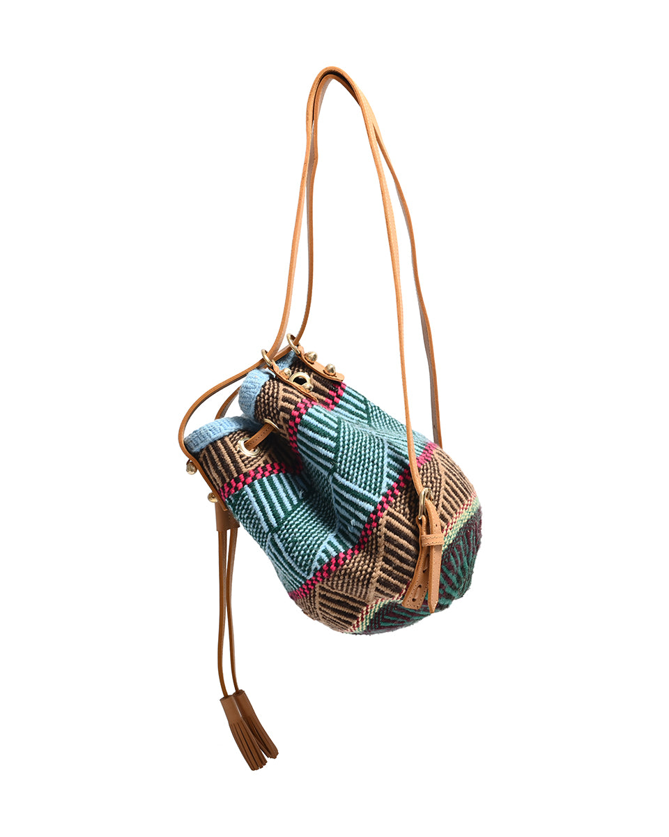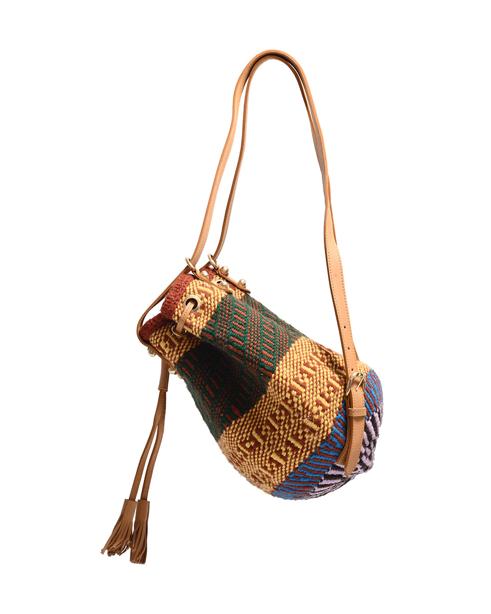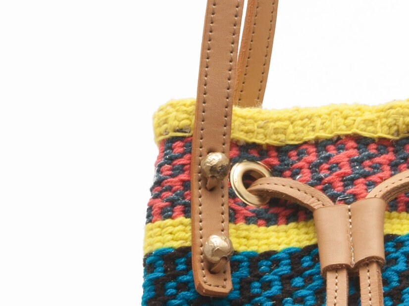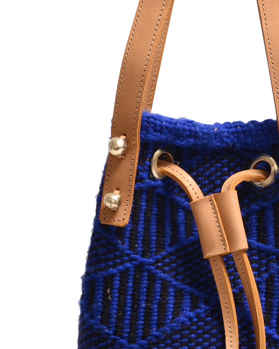 Sac d'été ultime et accessoire de festival parfait, nos sacs seau et sacs à dos tissés colorés sont tissés à la main dans des motifs tribaux uniques par des femmes travaillant au sein d'une coopérative de tissage au Kenya. Durables de bout en bout, les rivets en perles métalliques sont fabriqués à partir de laiton recyclé et coulé au sable par des artisans vivant dans le bidonville de Kawangware à Nairobi.