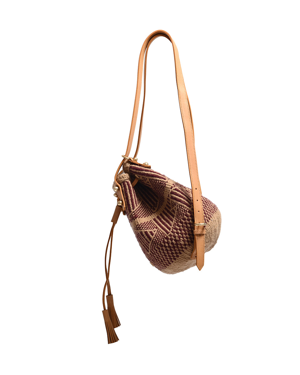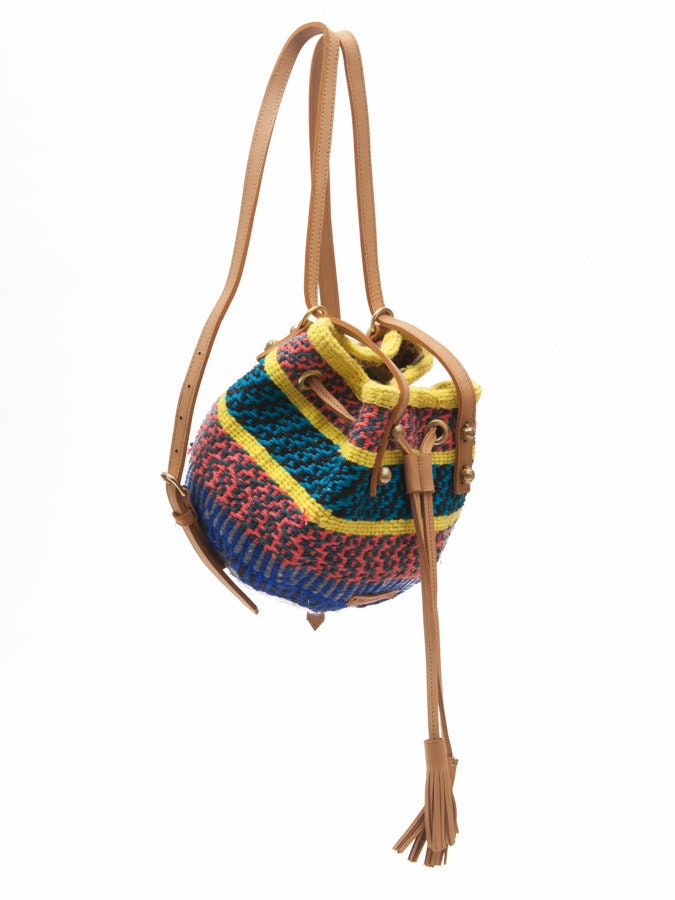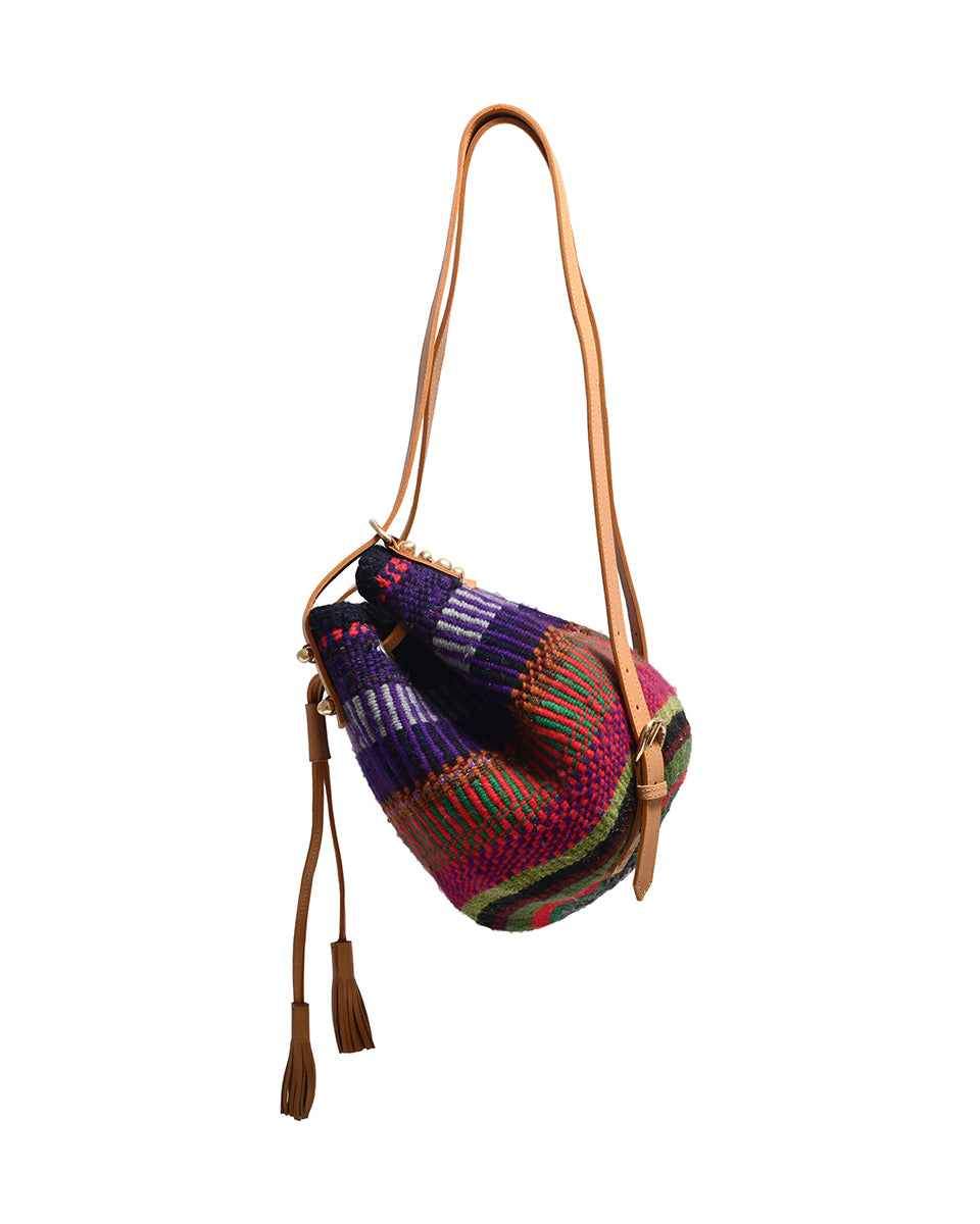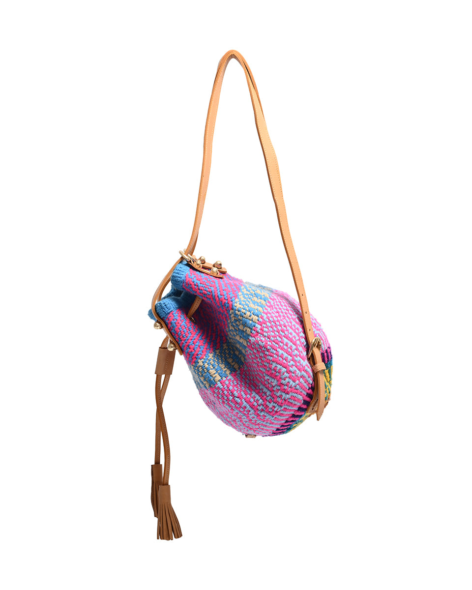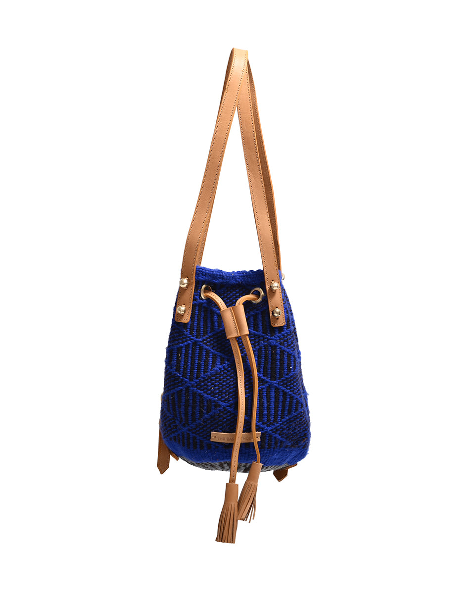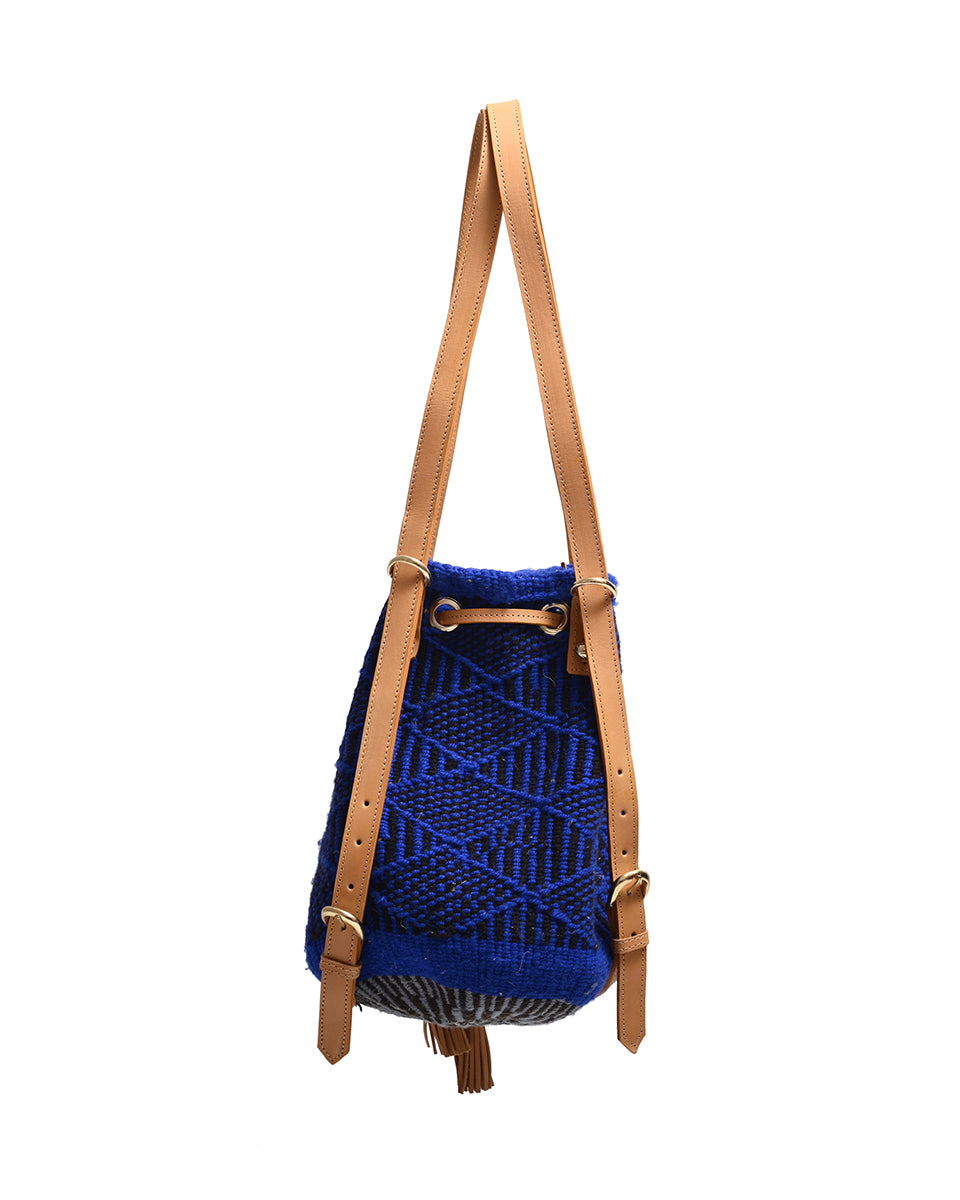 Sac d'été ultime et accessoire de festival parfait, nos sacs seau et sacs à dos tissés colorés sont tissés à la main dans des motifs tribaux uniques par des femmes travaillant au sein d'une coopérative de tissage au Kenya. Durables de bout en bout, les rivets en perles métalliques sont fabriqués à partir de laiton recyclé et coulé au sable par des artisans vivant dans le bidonville de Kawangware à Nairobi.