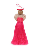 Les décorations de Noël qui deviennent des objets de famille sont celles qui racontent une histoire. Avec une jupe confectionnée à partir de frondes de sisal et un joli petit halo au sommet de sa tête, cette décoration d'arbre d'ange en rose vif et blanc vient d'eSwatini, tissée à la main à partir d'herbe de sisal locale. Nous adorons ses ailes en forme de cœur.