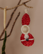 C'est le grand homme lui-même ! Cette décoration de sapin du Père Noël avec un grand chapeau rouge et une ceinture blanche sur le ventre a été réalisée en eSwatini rural, tissée à la main à partir d'herbe de sisal indigène. Découvrez sa barbe en sisal !