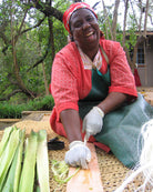 Chaque décoration suspendue de cette collection de décorations pour arbres de Noël apporte un travail durable aux artisans ruraux, de la culture et de la récolte à la préparation et à la teinture des fibres, le tout avant le début du tissage.