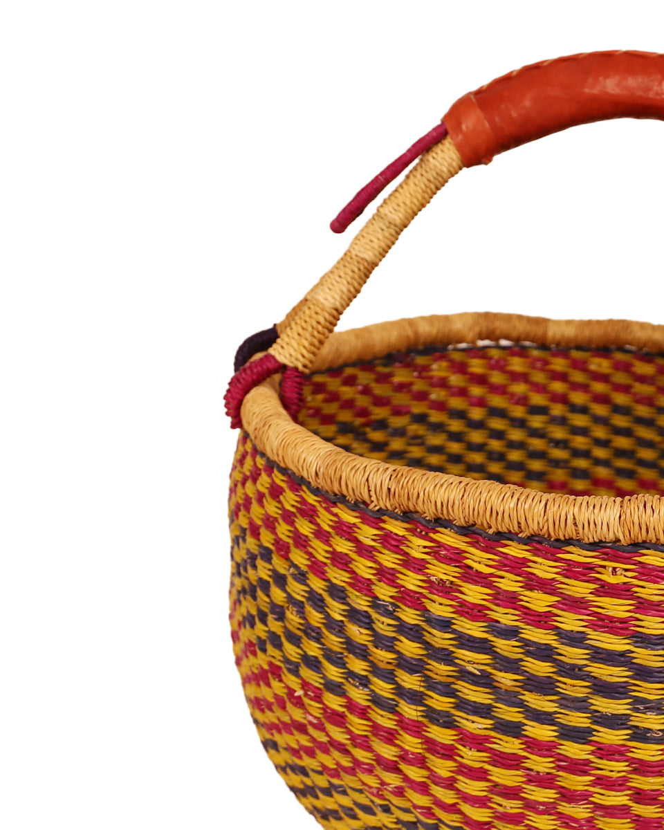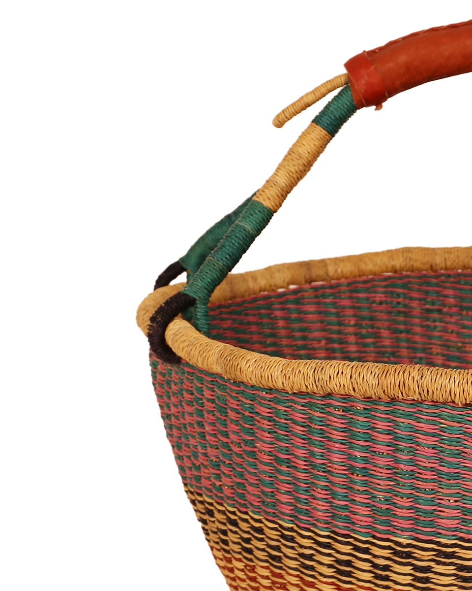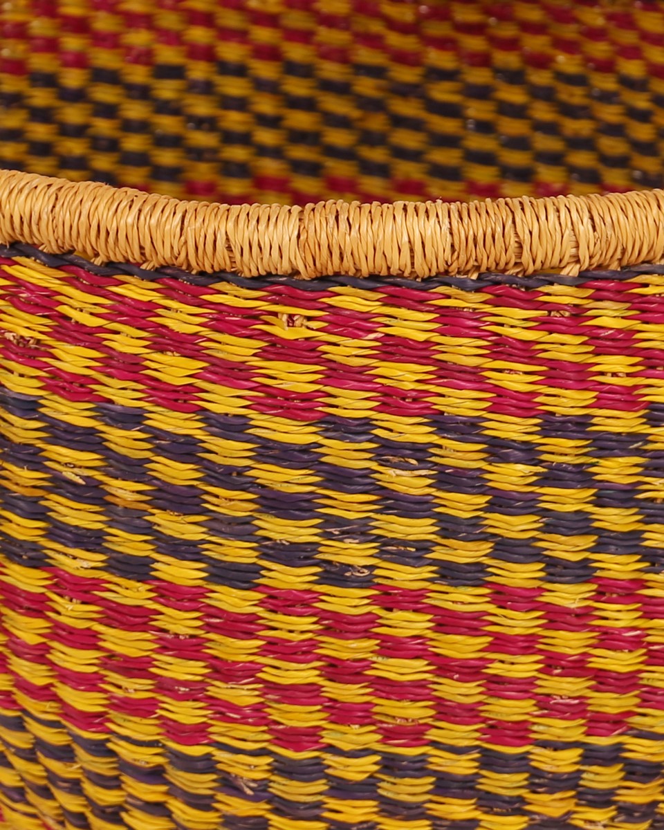 Ces paniers à provisions bolga et paniers de rangement ronds produits de manière éthique sont tissés à la main dans les zones rurales du Ghana - pratiquement tous totalement uniques. Choisissez parmi des paniers tendance en forme de pot, des paniers de marché et des paniers bolga ronds avec poignées dans un kaléidoscope de couleurs – pour le shopping ou le rangement à la maison. Tous ces paniers sont tissés à partir d'herbe Veta Vera qui pousse à l'état sauvage au Ghana et est incroyablement robuste : une alternative élégante et durable au plastique.