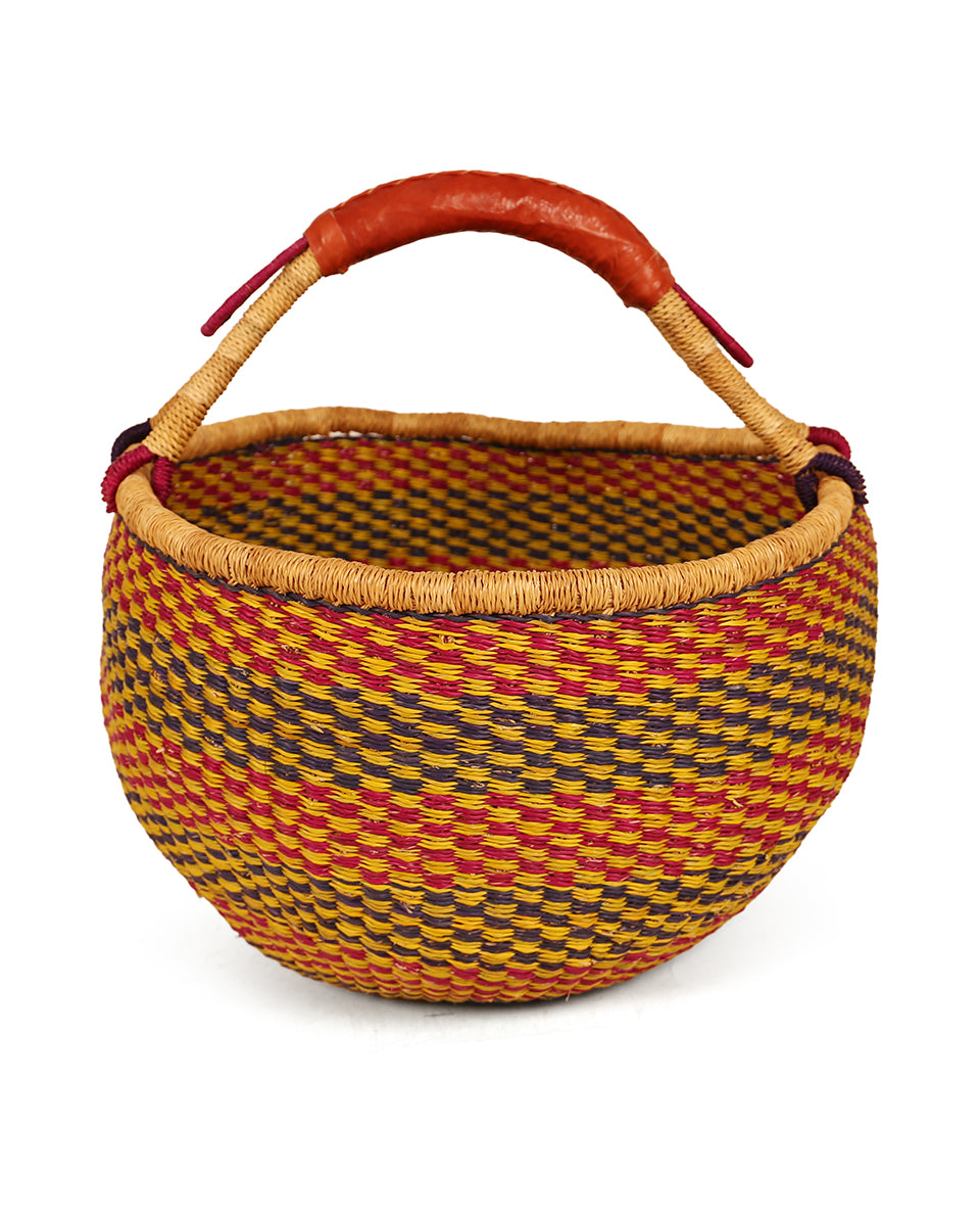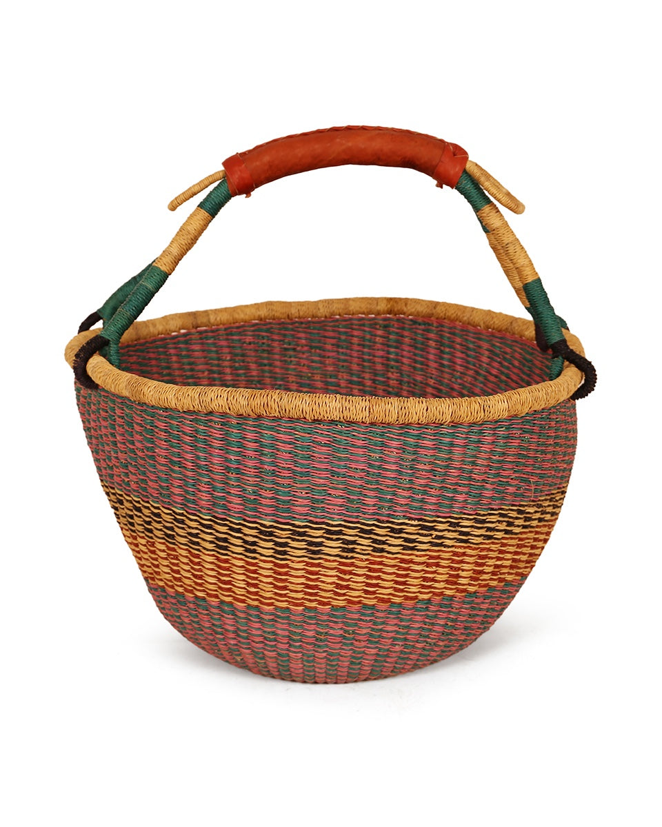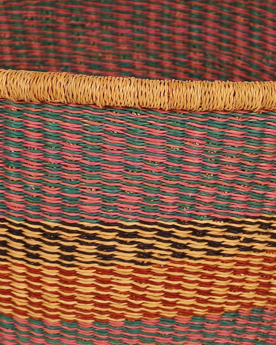Ces paniers à provisions bolga et paniers de rangement ronds produits de manière éthique sont tissés à la main dans les zones rurales du Ghana - pratiquement tous totalement uniques. Choisissez parmi des paniers tendance en forme de pot, des paniers de marché et des paniers bolga ronds avec poignées dans un kaléidoscope de couleurs – pour le shopping ou le rangement à la maison. Tous ces paniers sont tissés à partir d'herbe Veta Vera qui pousse à l'état sauvage au Ghana et est incroyablement robuste : une alternative élégante et durable au plastique.