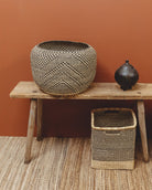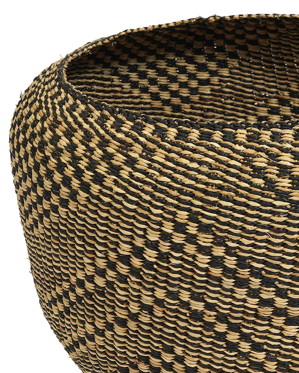 JUABEN: Large Natural & Black Sculptural Round Storage Basket