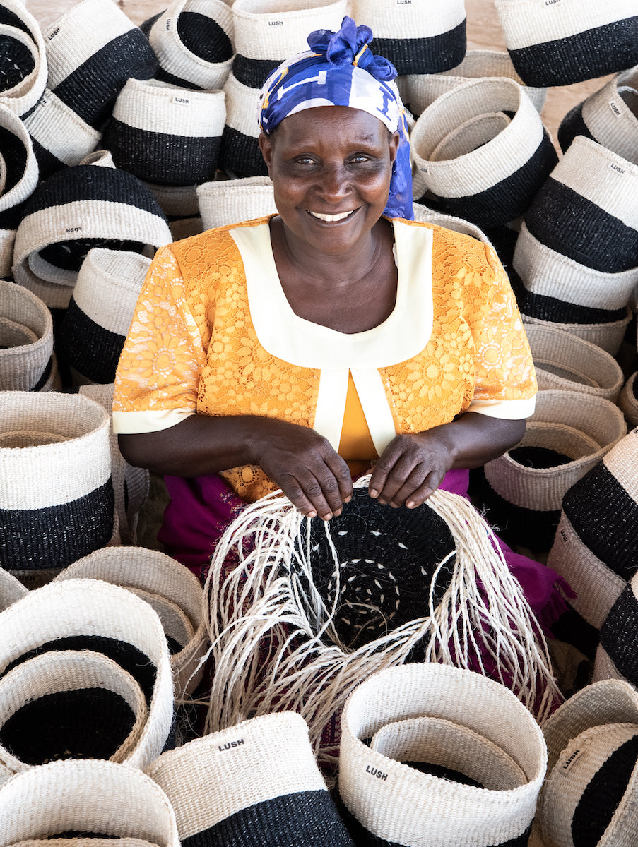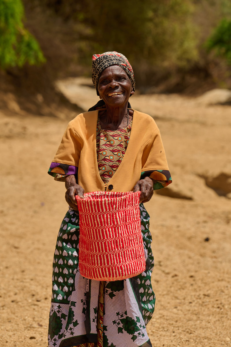 Les femmes talentueuses derrière la plupart de nos paniers sont membres d'une coopérative de tissage familiale dans l'est du Kenya. Les compétences uniques utilisées pour produire ces sacs panier sont transmises de grands-mères à petites-filles, et chaque sac raconte donc une histoire unique d'artisanat et de collaboration.
