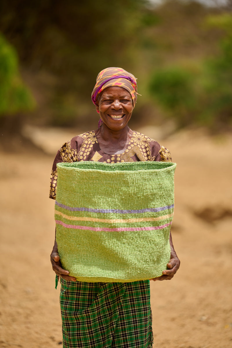 The talented women behind our sisal laundry baskets and sisal totes are members of a family run weaving cooperative in Eastern Kenya. The unique skills used to produce these basket bags are passed from grandmothers to granddaughters, and so each bag tells a unique story of craft and collaboration.