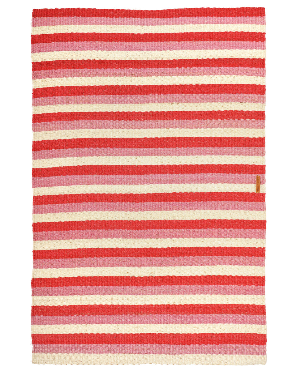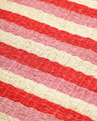 Ce magnifique tapis de sol présente des colonnes de noir et blanc et de noir et rose framboise, séparées par de larges bandes de rayures horizontales blanches. PANA apportera une touche de style kenyan à la chambre de bébé, à la salle de jeux, au couloir ou au salon.