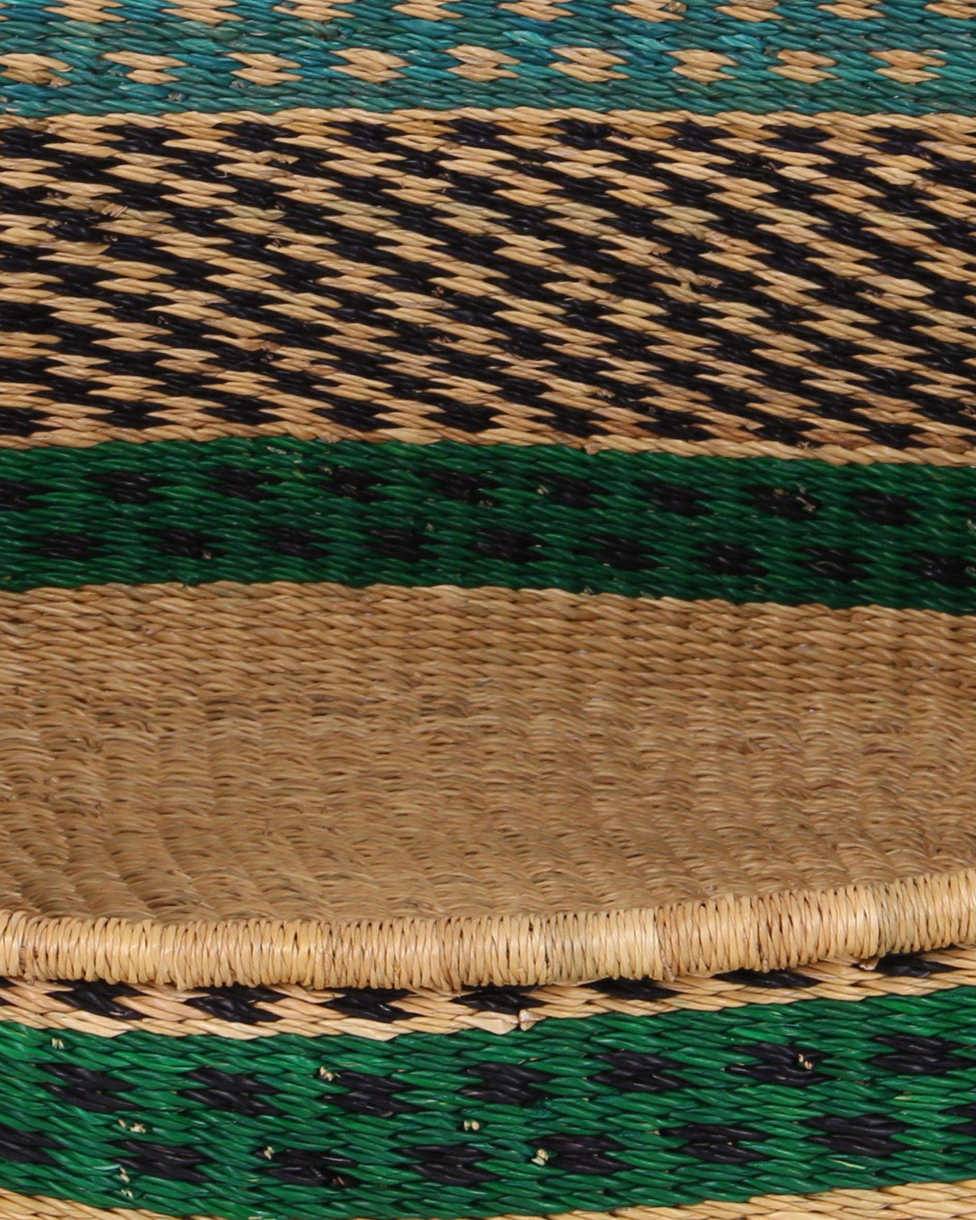 Woven from indigenous veta vera grasses in Northern Ghana - also known as Elephant Grass - each dog basket takes up to three days to weave by hand. The production process is lengthy: this Ghanaian grass is harvested, split, hand-rolled and dyed before a skilled weaver from our partner weaving cooperative in sets to work.