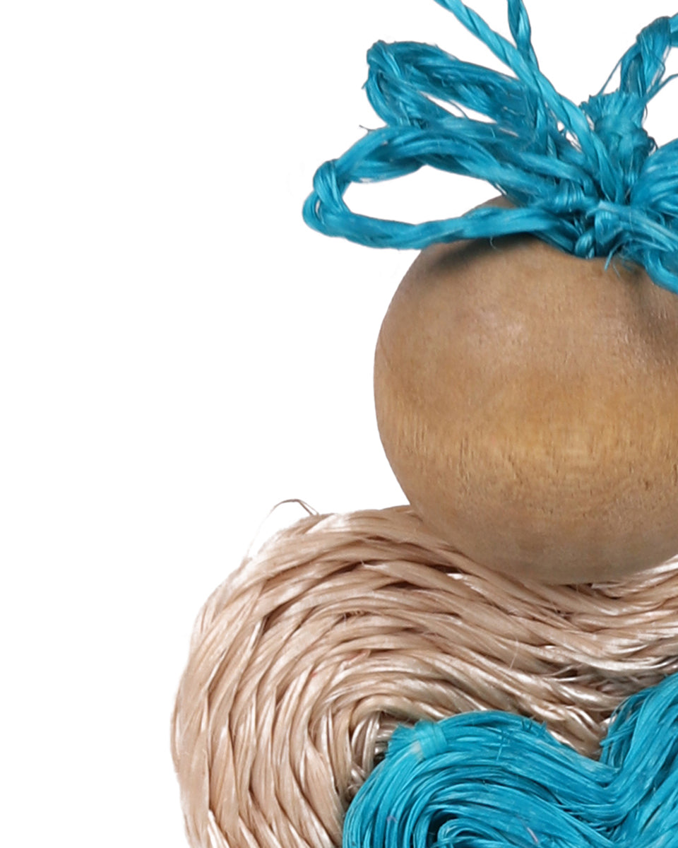 A Christmas tree decoration for the very top! This handwoven angel tree decoration was made in rural eSwatini, handwoven from indigenous sisal grass. We adore her bright turquoise grass skirt, her heart-shaped wings and her sweet little halo.