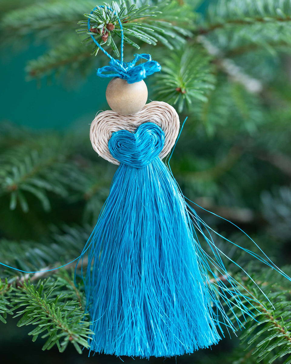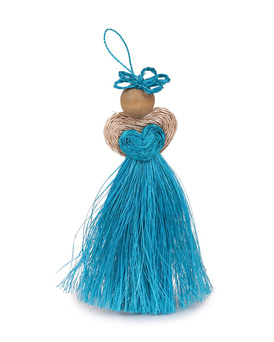 EZIBOMVANA: Handwoven Turquoise Love Angel Tree Decoration