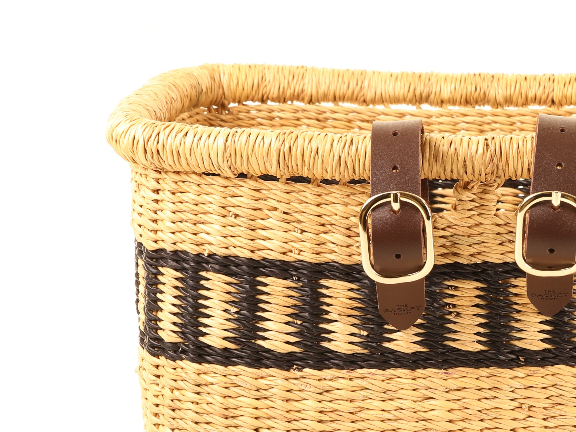 Give those two wheels an instant upgrade with the beautiful FANTE bicycle basket. Designed in-house by The Basket Room, this unique hand-woven bike accessory boasts a striking black dye pattern against natural grass.