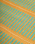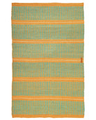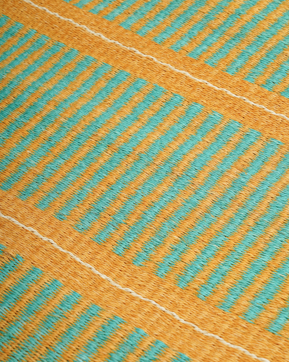 This beautiful yellow and turquoise rug is available in two sizes: small and runner, and is also available in the same colours in a bold stripe design.