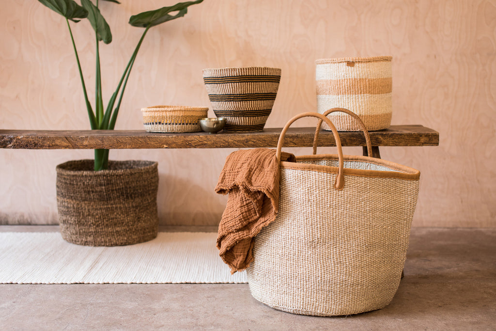 Created by one of the most experienced members of the women’s weaving cooperatives in the rural Eastern Region of Kenya, this lovely laundry hamper is hand woven from the indigenous sisal plant. The stiff leaves of this fibrous shrub are often used for producing rope and twine, and undergo a lengthy process of harvesting, rolling and dyeing - all by hand - before being carefully woven. Each laundry basket takes six days and up to forty balls of sisal to complete, whilst two skilled leather workers (known locally as ‘fundi’) produce the trim and handles.