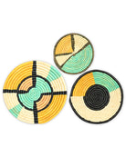 Woven from raffia palms and banana fibres, these woven wall baskets are all a little different to one another, and will bring gorgeous texture and character to any wall space. These shallow woven baskets can also be used for fruit and bread, or for displaying jewellery, soaps or hand towels. Please note that as with all handmade basketry, designs might differ slightly from the products pictured.