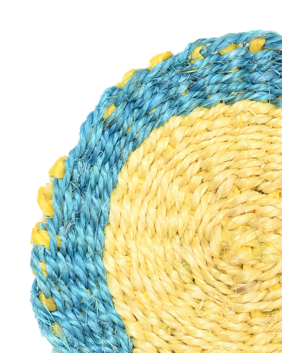 Bring sweet pastel hues to the table with these JOHARI handwoven placemats and coasters: soft yellow with a baby blue rim. Perfect for lazy brunches, al fresco suppers and family suppers, these sisal placemats are just too beautiful to be kept for best. Mix and match colours or opt for matching sets: there are so many beautiful combinations to be found in this very special collection.