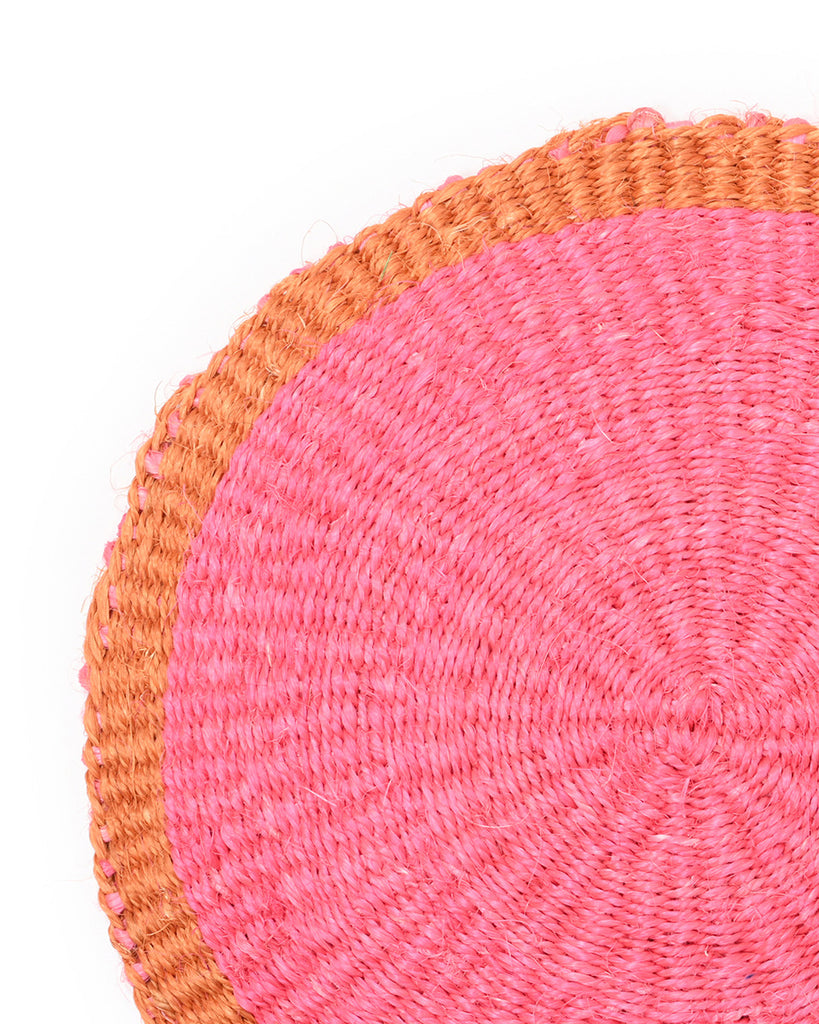 Bring a splash of colour to the table with our ZUBERI handwoven sisal placemats and coasters: bright pink in colour with a bold nu orange rim. These sisal placemats will bring a sense of occasion to your lunches and brunches, al fresco suppers and family gatherings. Mix and match colours for an eclectic table or opt for matching sets: there are so many beautiful combinations to be found in this sisal tableware collection.